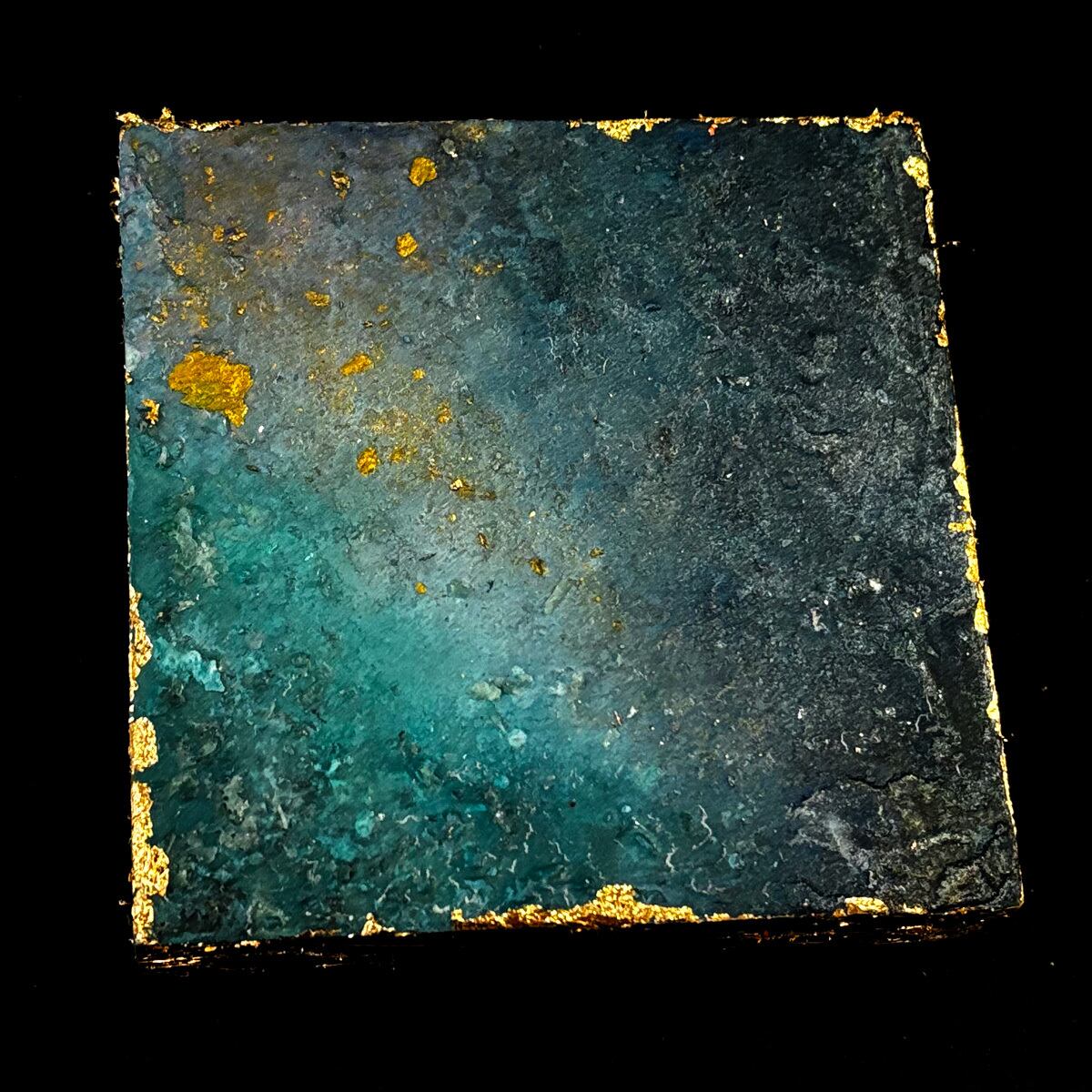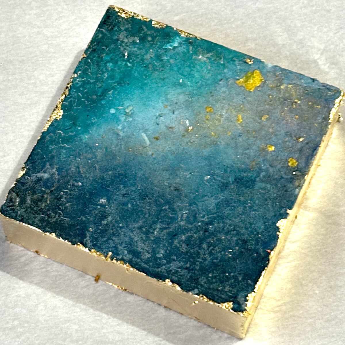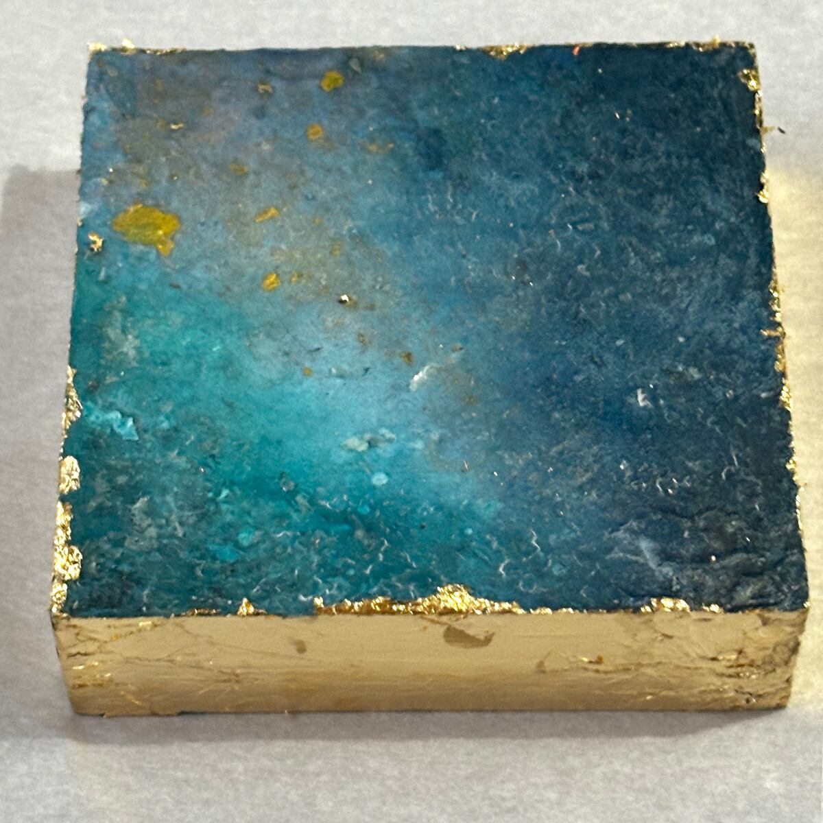 10センチ角の木製ボックスに、それぞれジェッソや絵の具を流し込んで唯一無二の世界を創造!