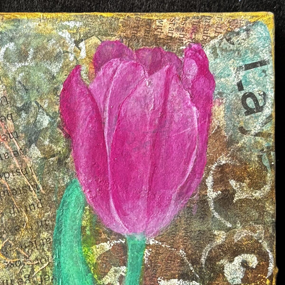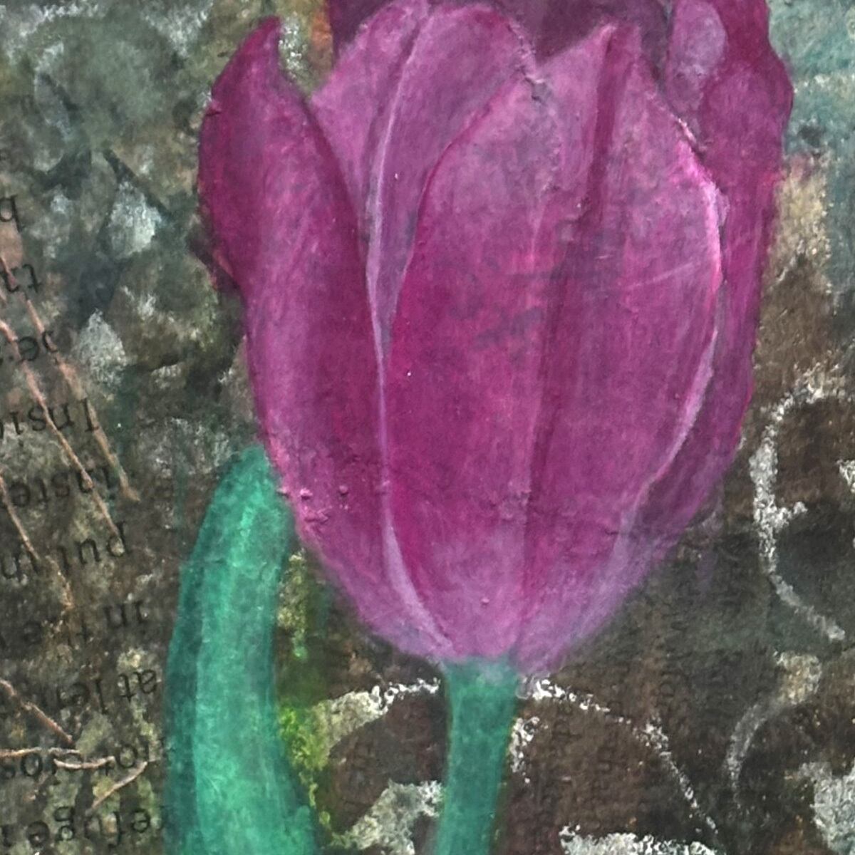 チューリップは、アクリル絵の具で、直い描画。卒業式にプレゼントされた思い出のお花です。
