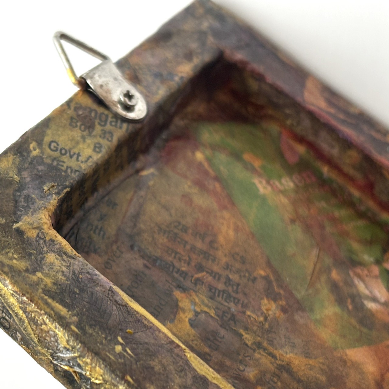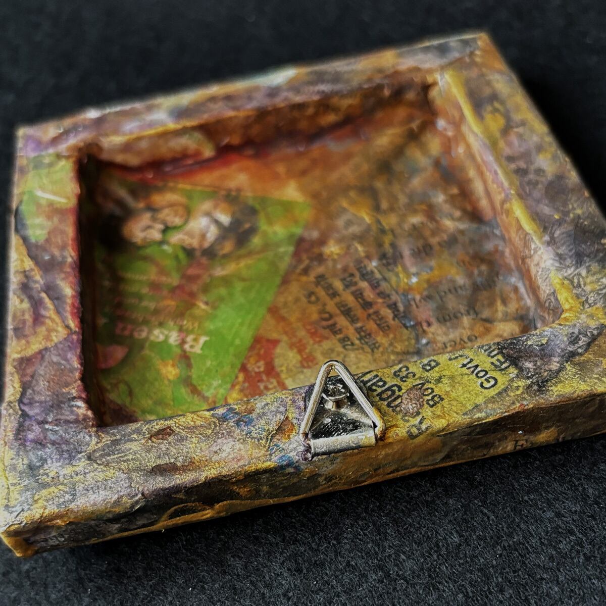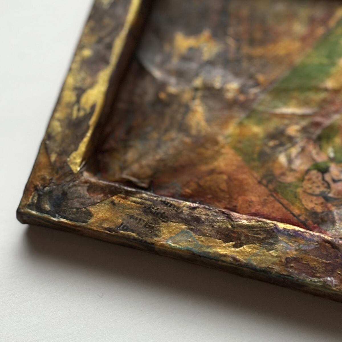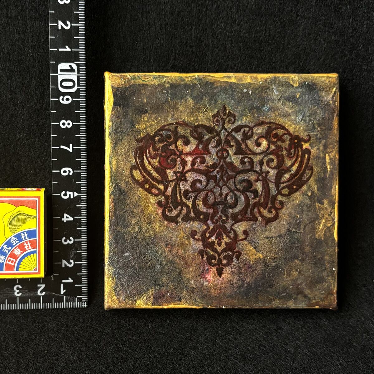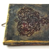 インクや絵の具やゴールド系などのメディウムで汚れや風合いを出し、アンティーク風に仕上げました。