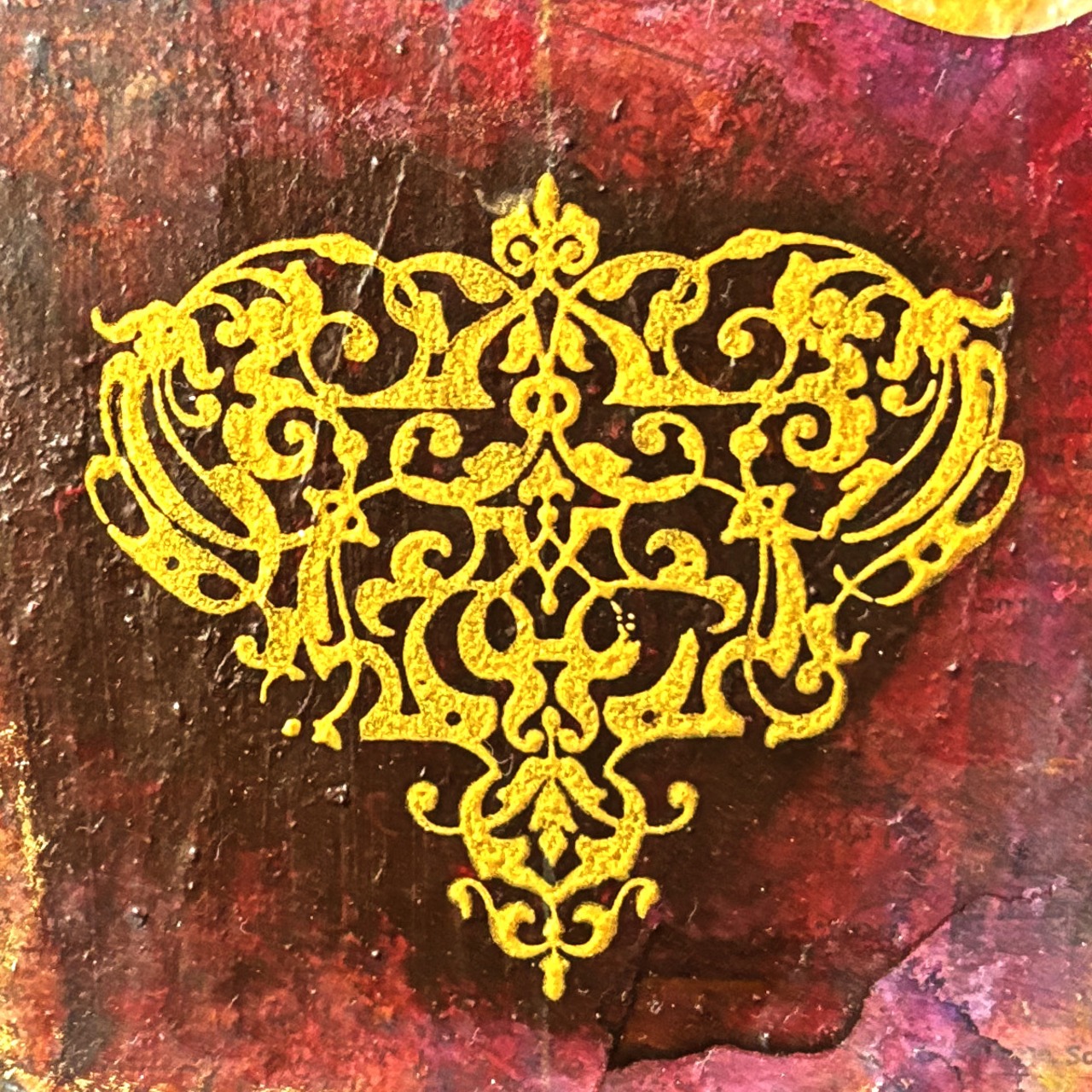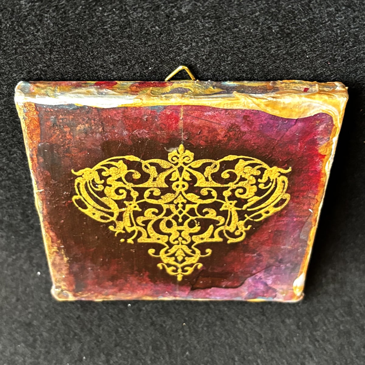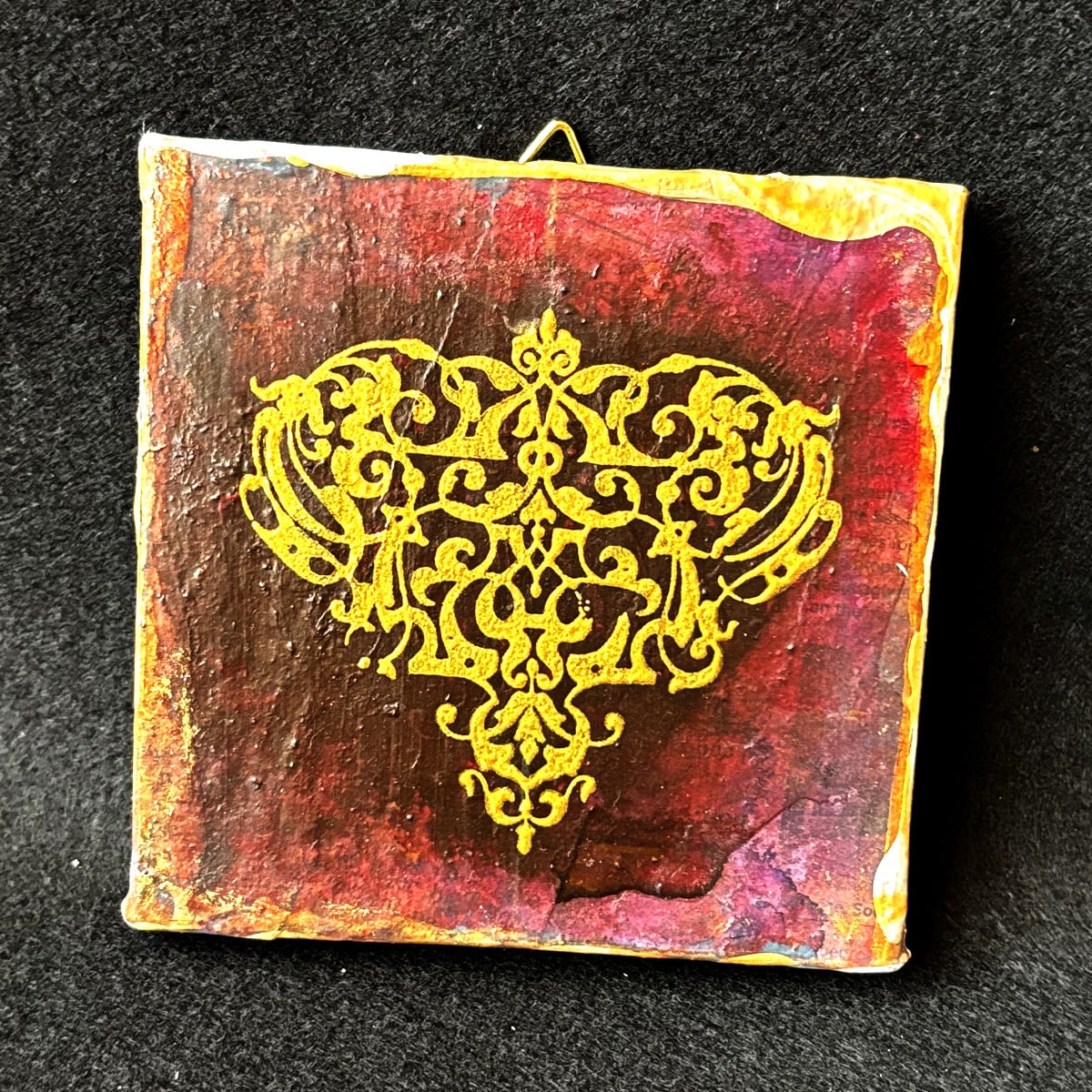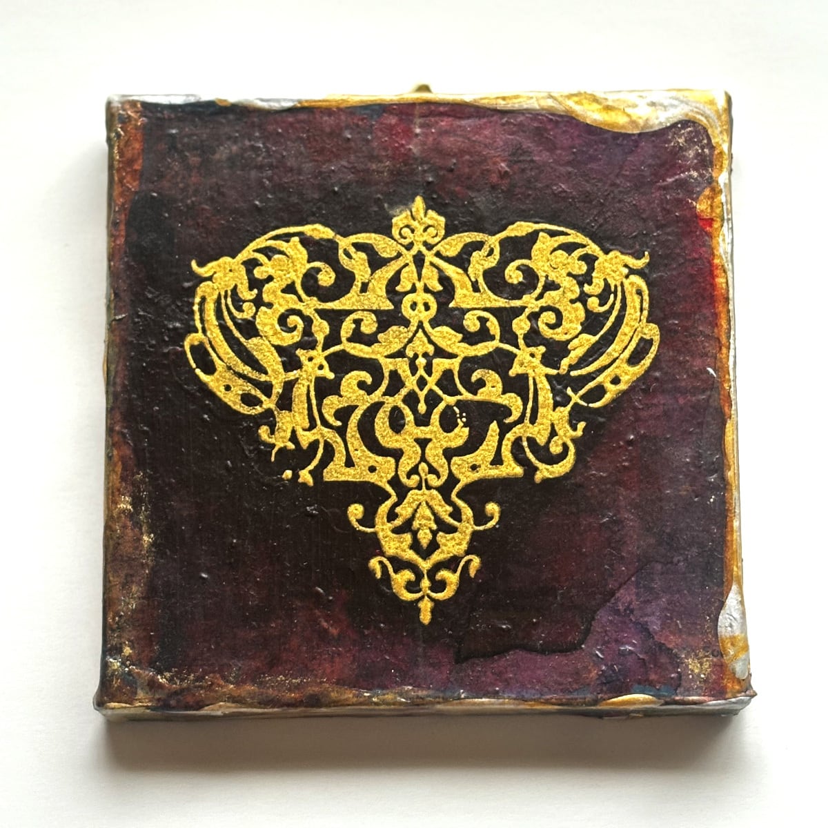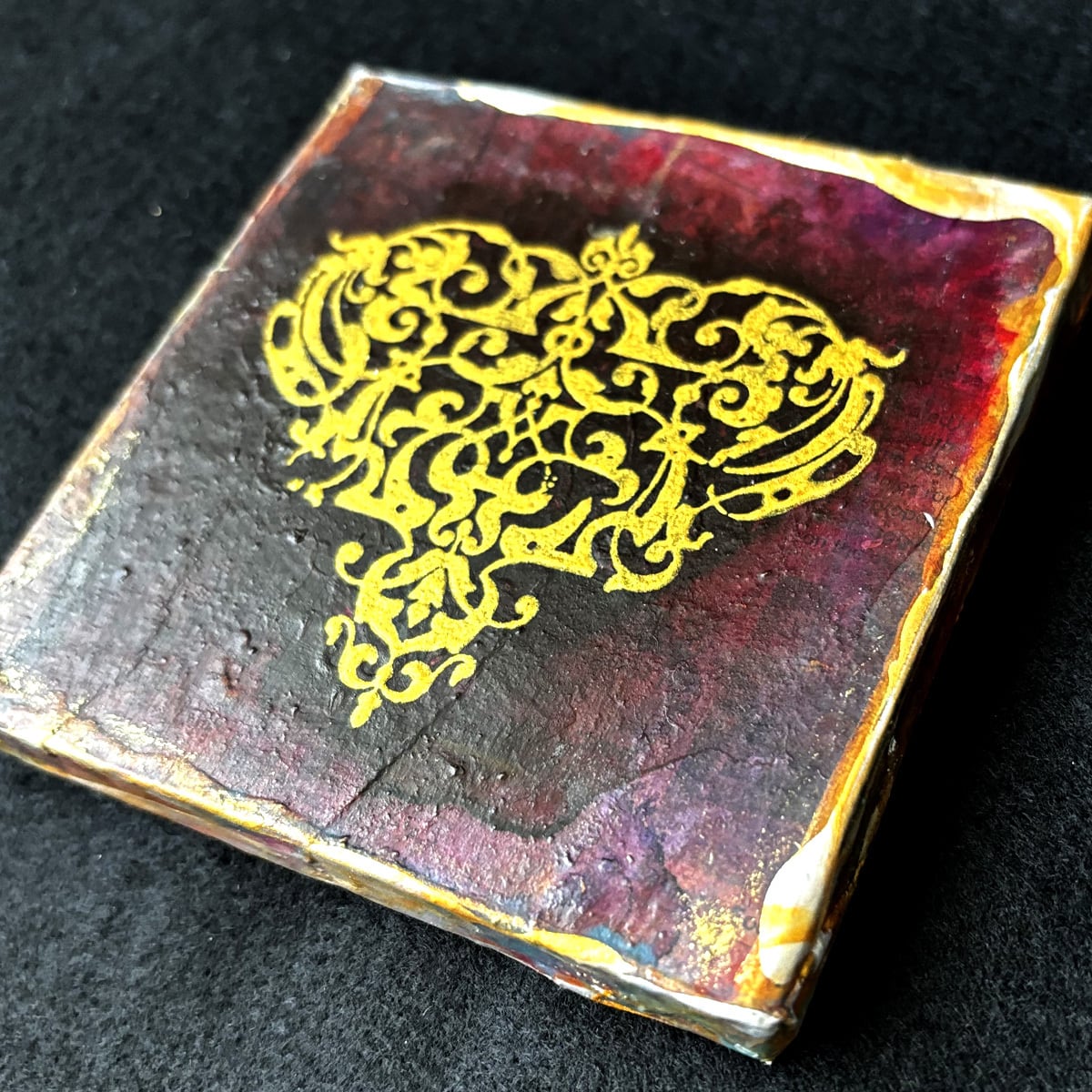 インクや絵の具やゴールド系などのメディウムで汚れや風合いを出し、独特の味わい深い雰囲気になっています。