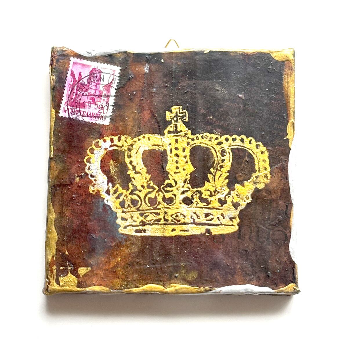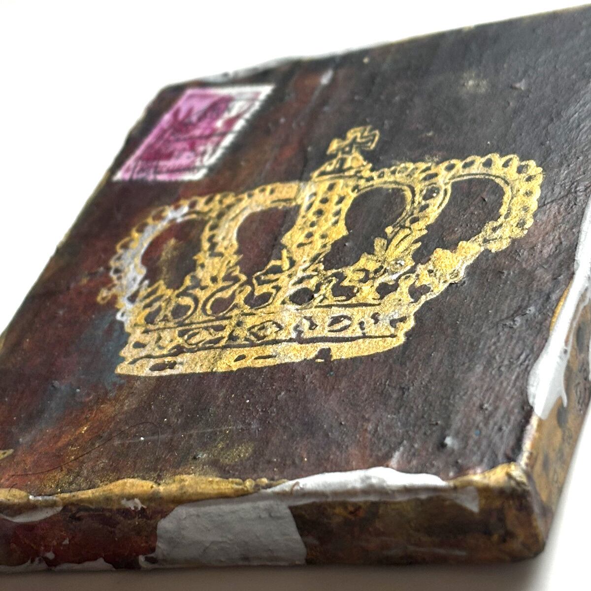 図形の王冠は、シルクスクリーンで木に露のインクで刷りました。