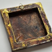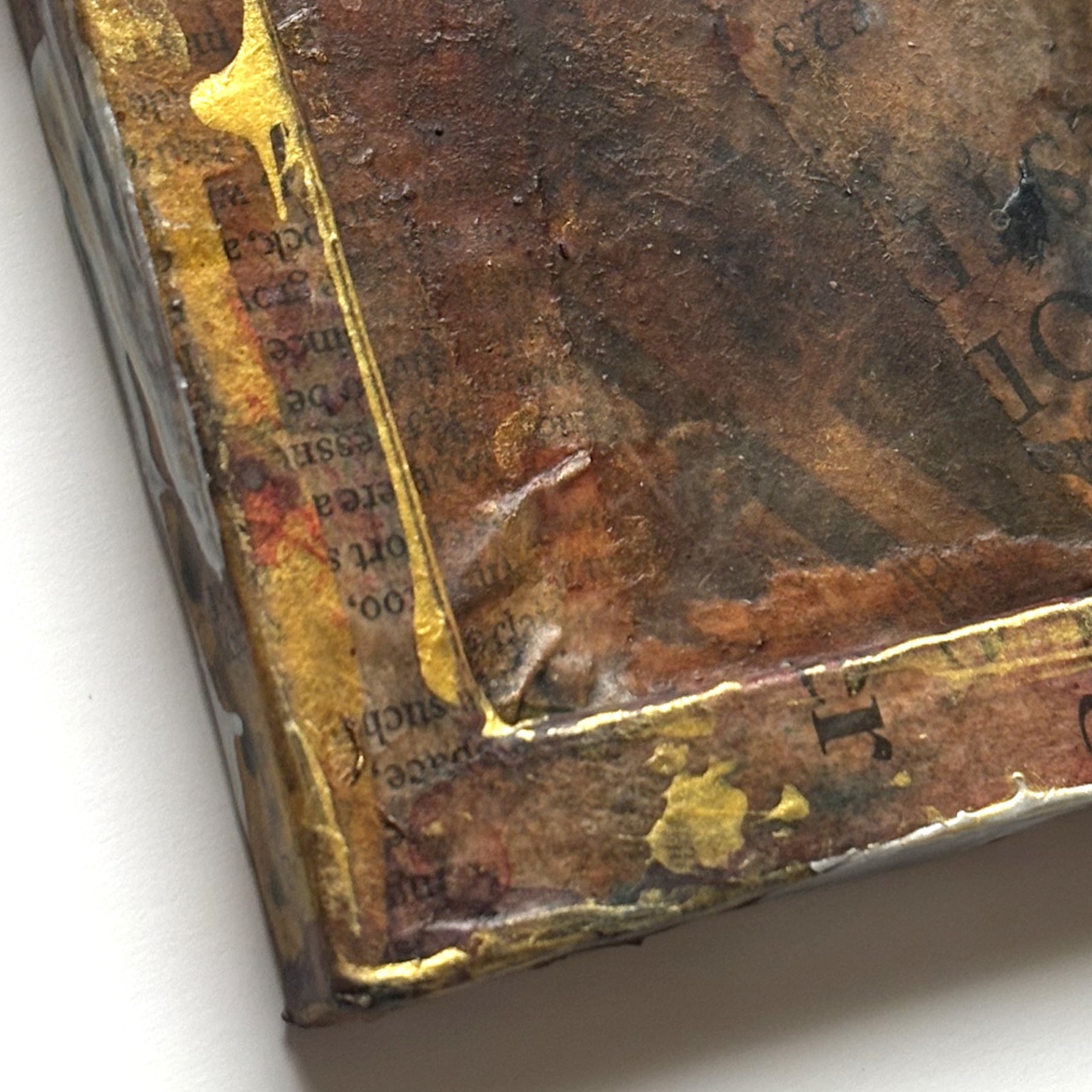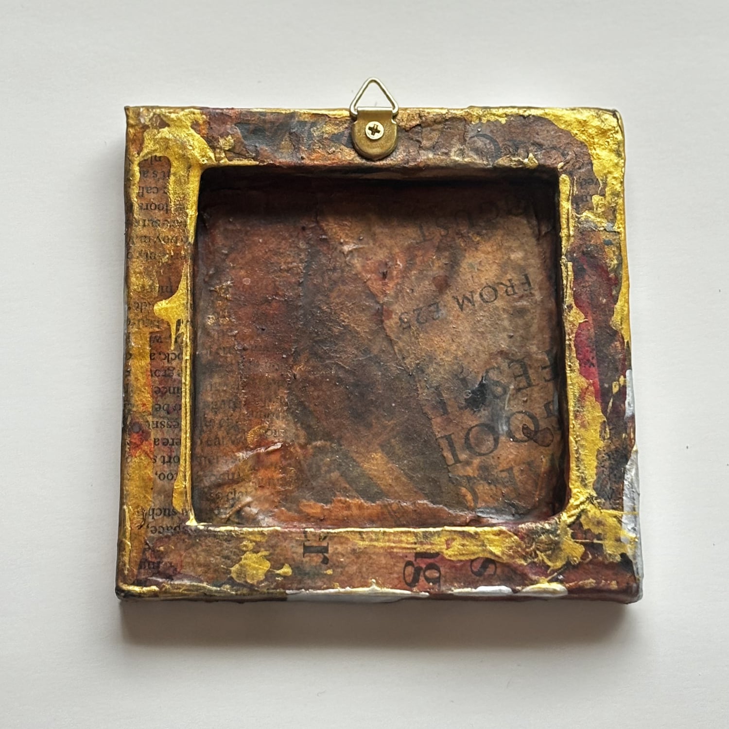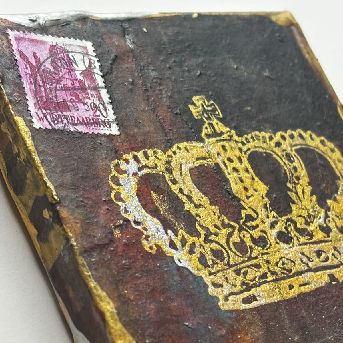 小さなキャンバスを、英字新聞や雑誌などでコラージュし、アンティーク風にしました。