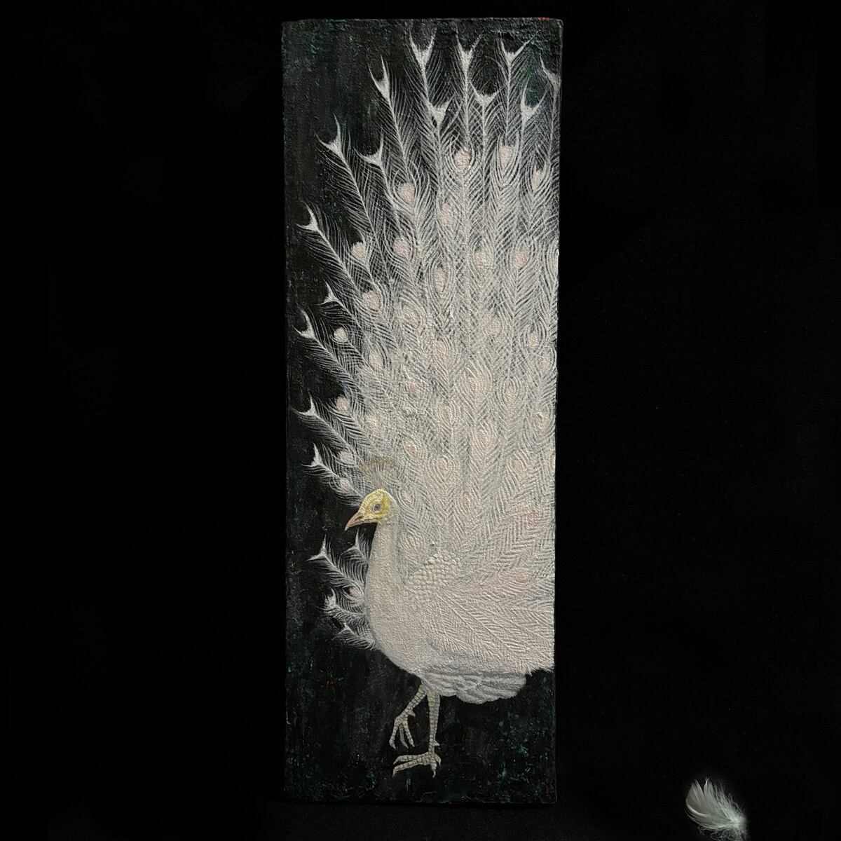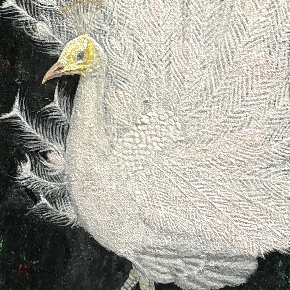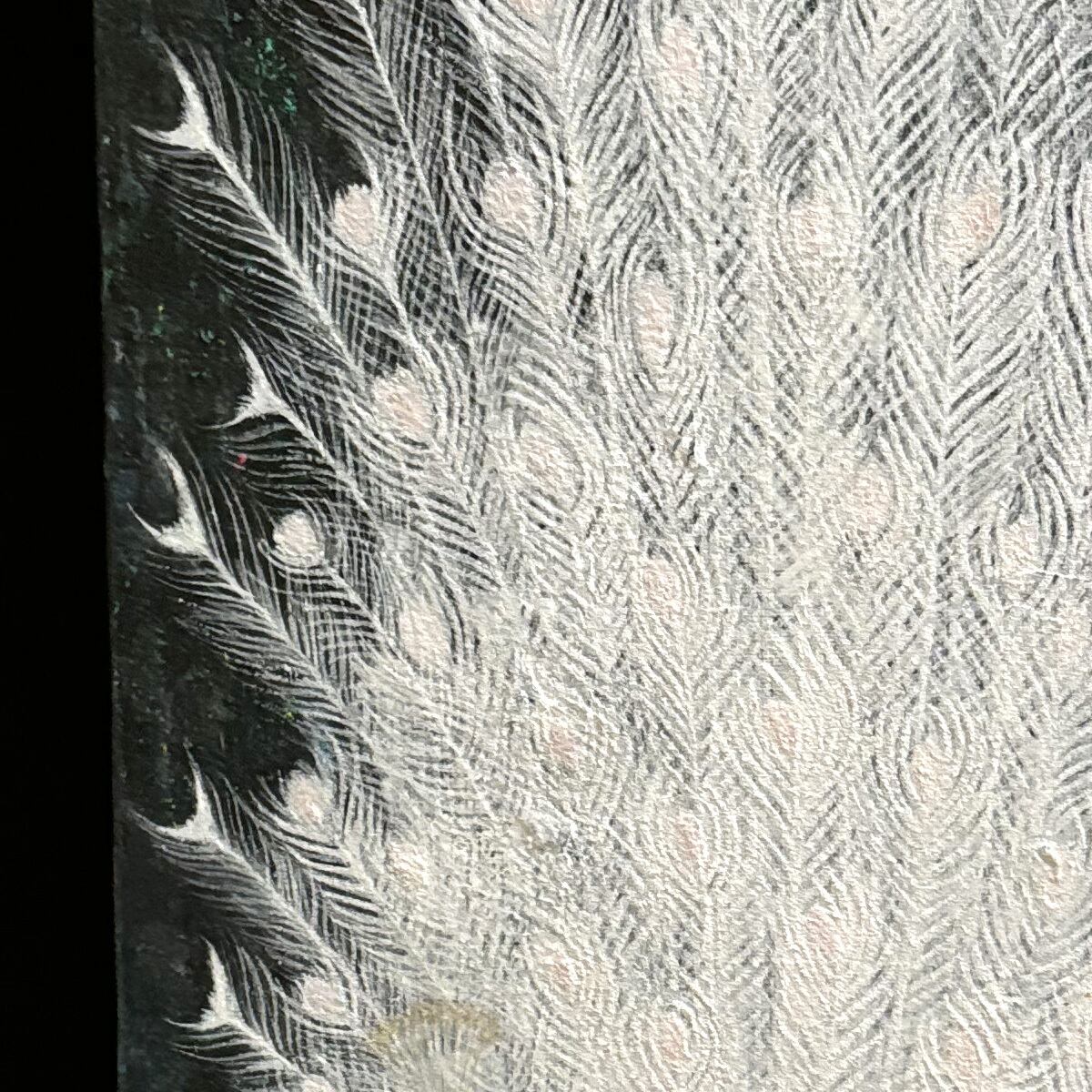 盛り上がっているところは、純方解末という鉱石を砕いた顔料に胡粉ジェッソを混ぜて凹凸を出しています。
