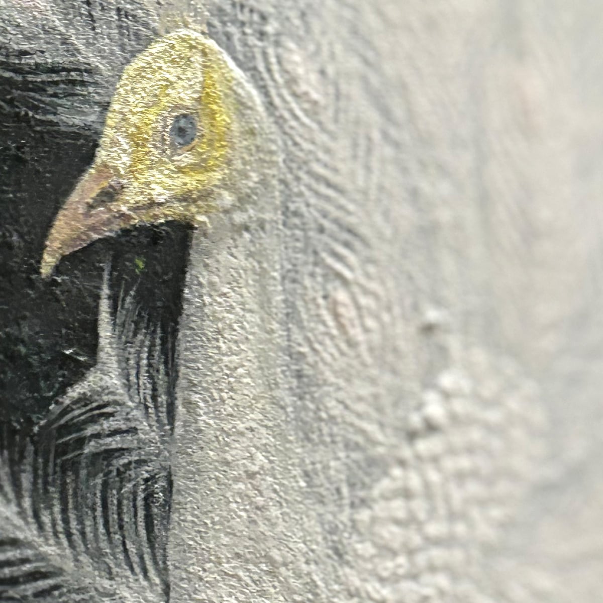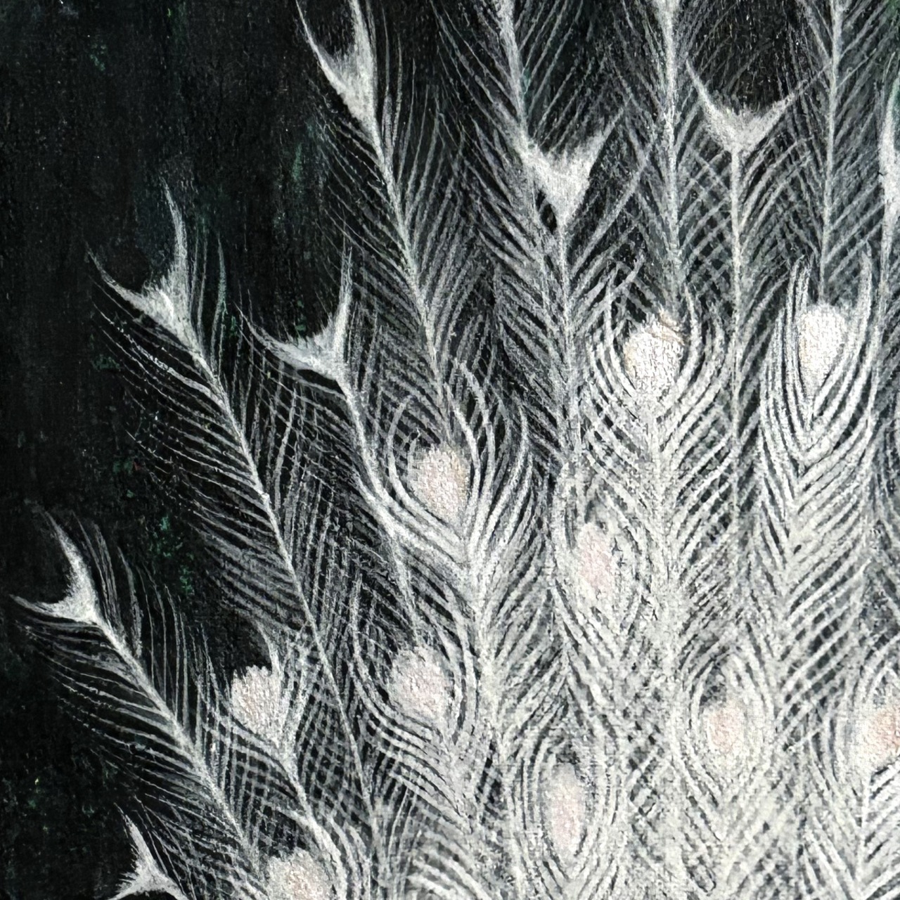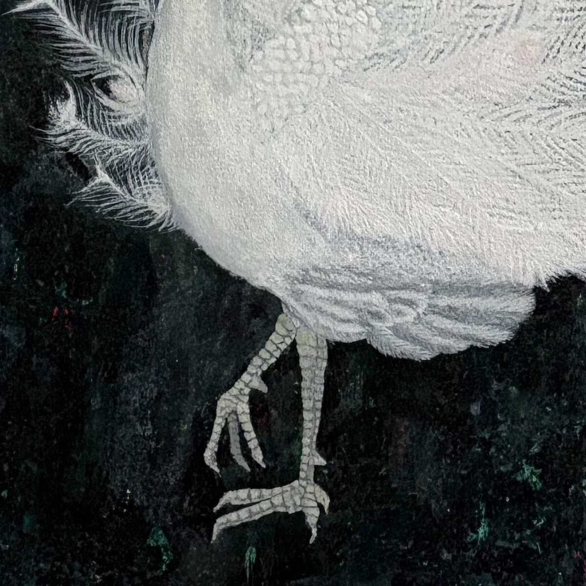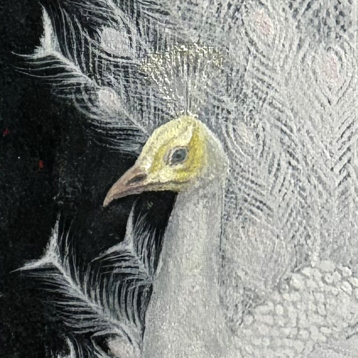 羽の部分を何度も何度も重ねて描くことで、立体感が出し羽の質感を表現しました。