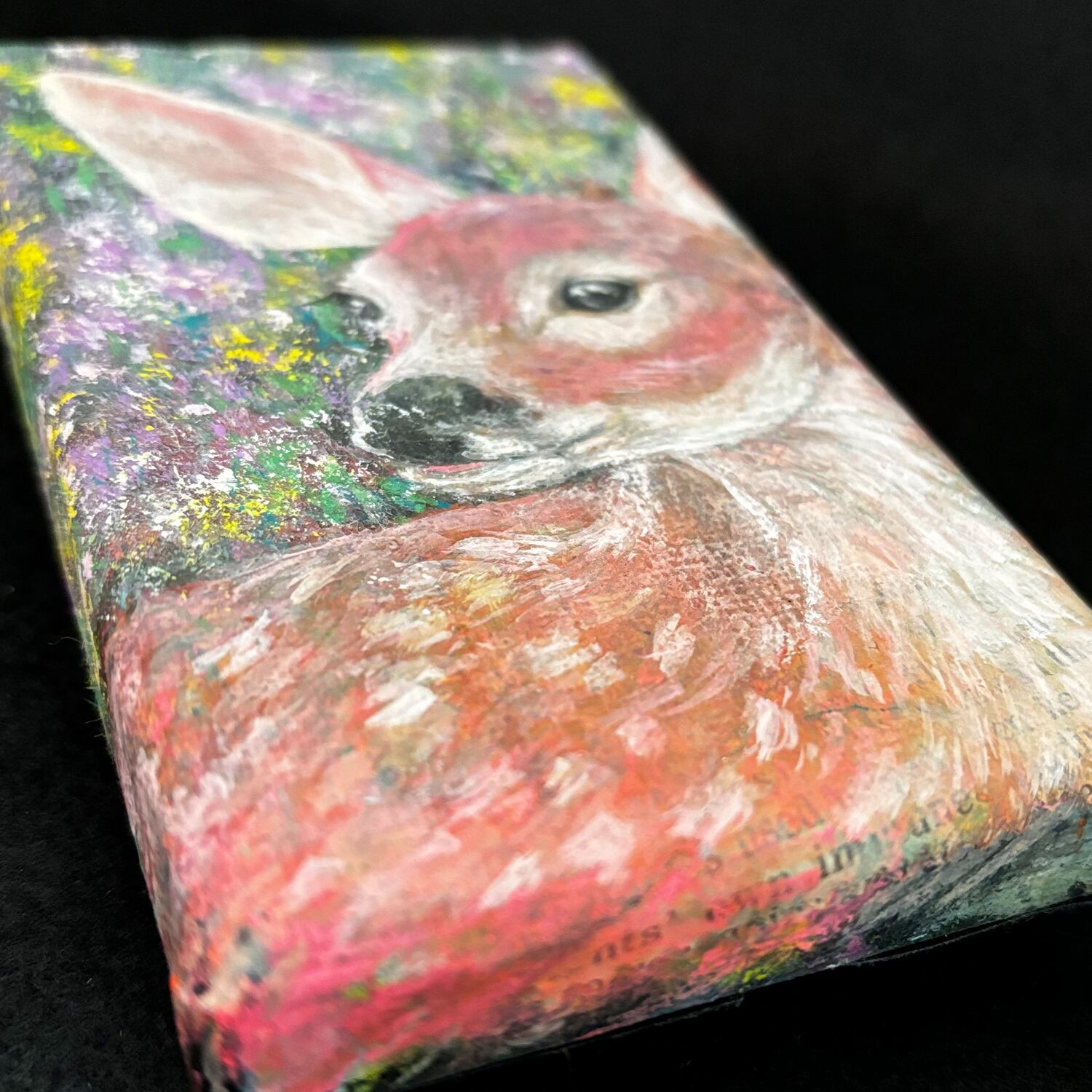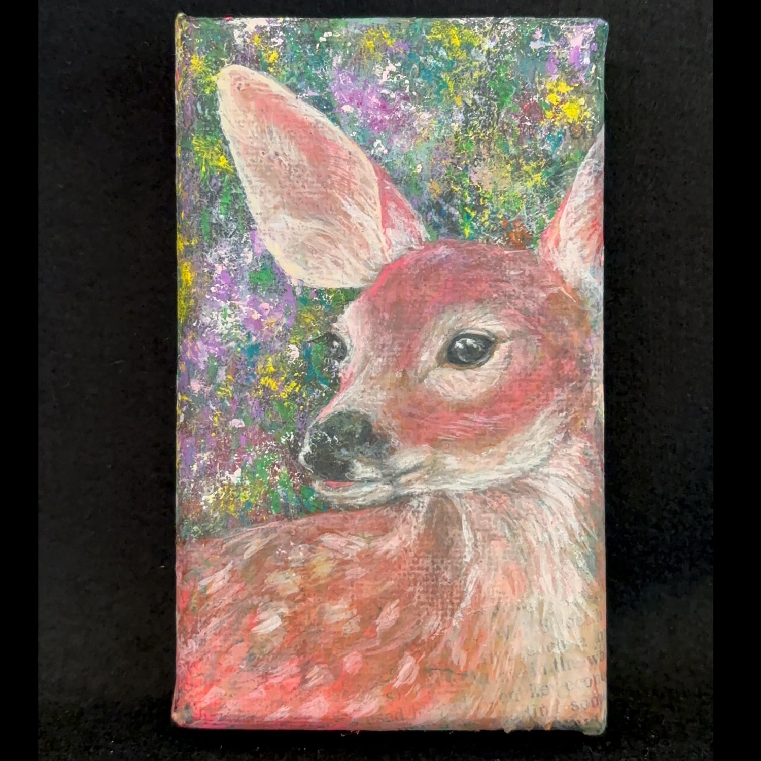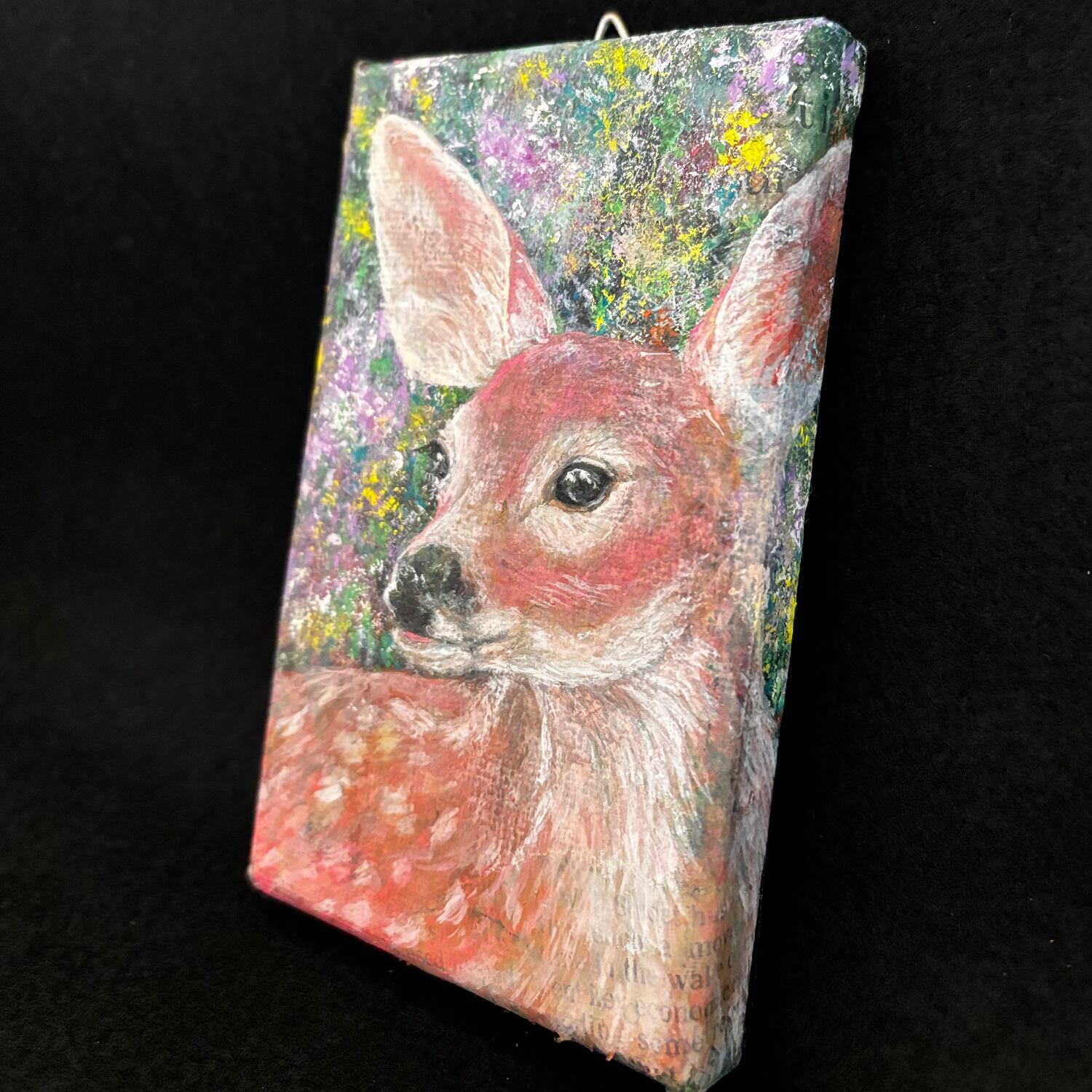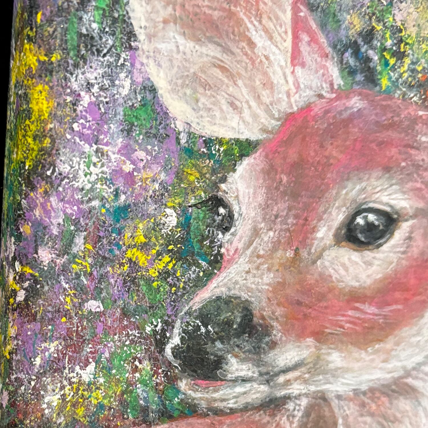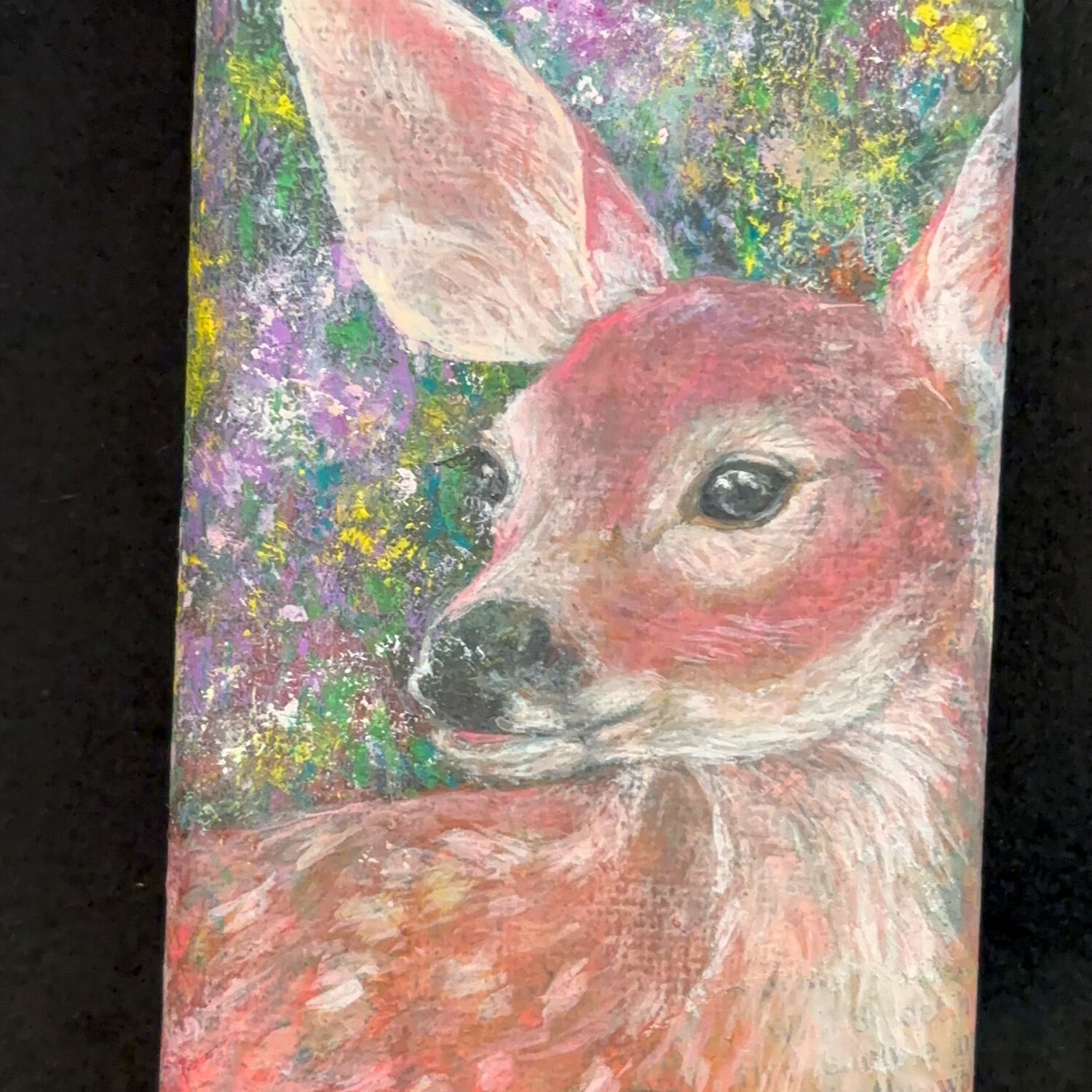 小さなキャンバス(7.5cm × 12.5cm)に子鹿を描きました。