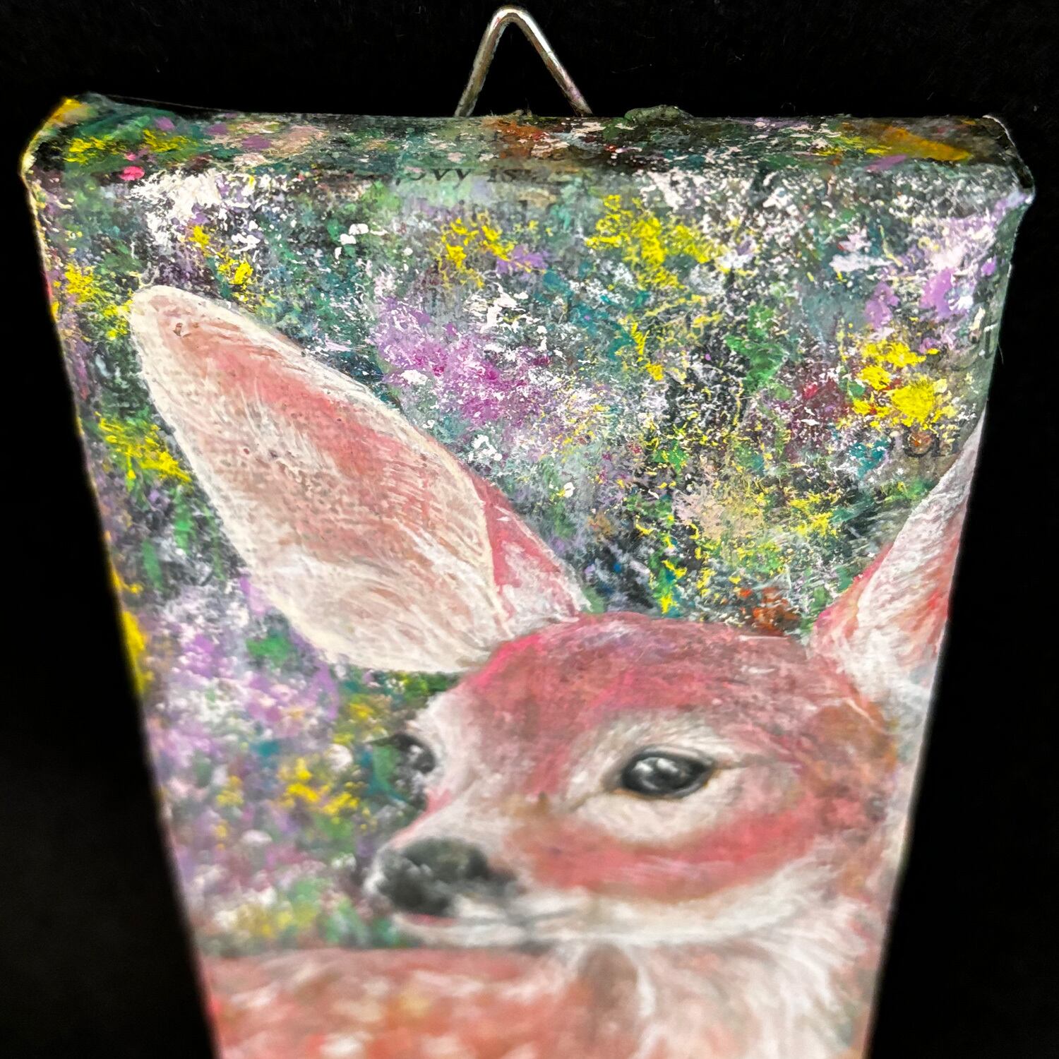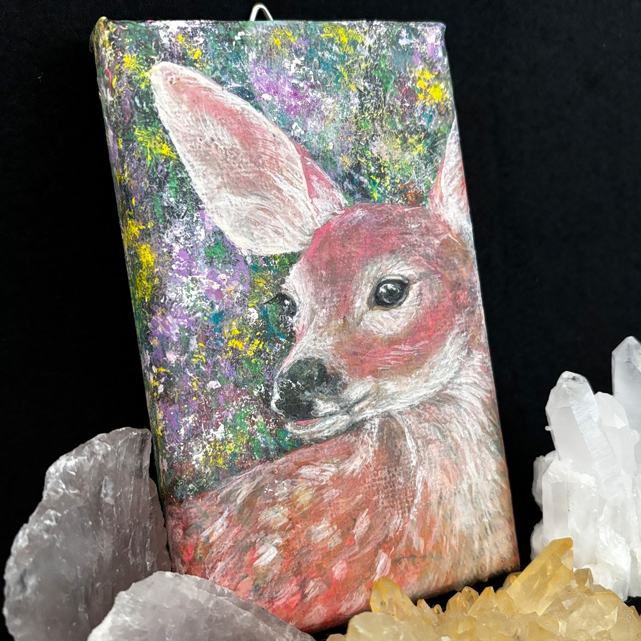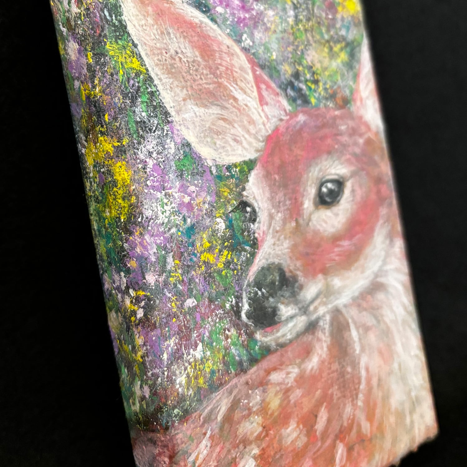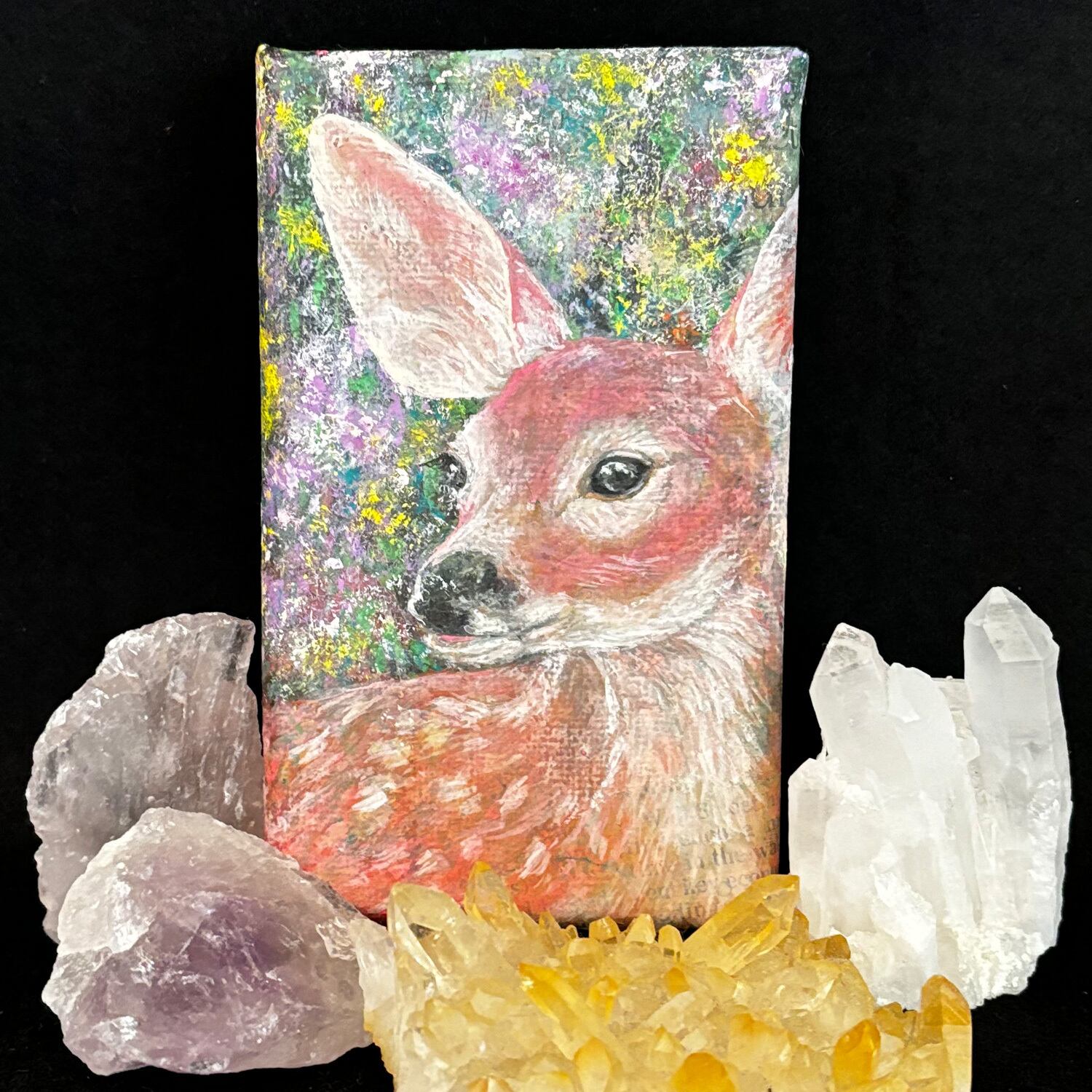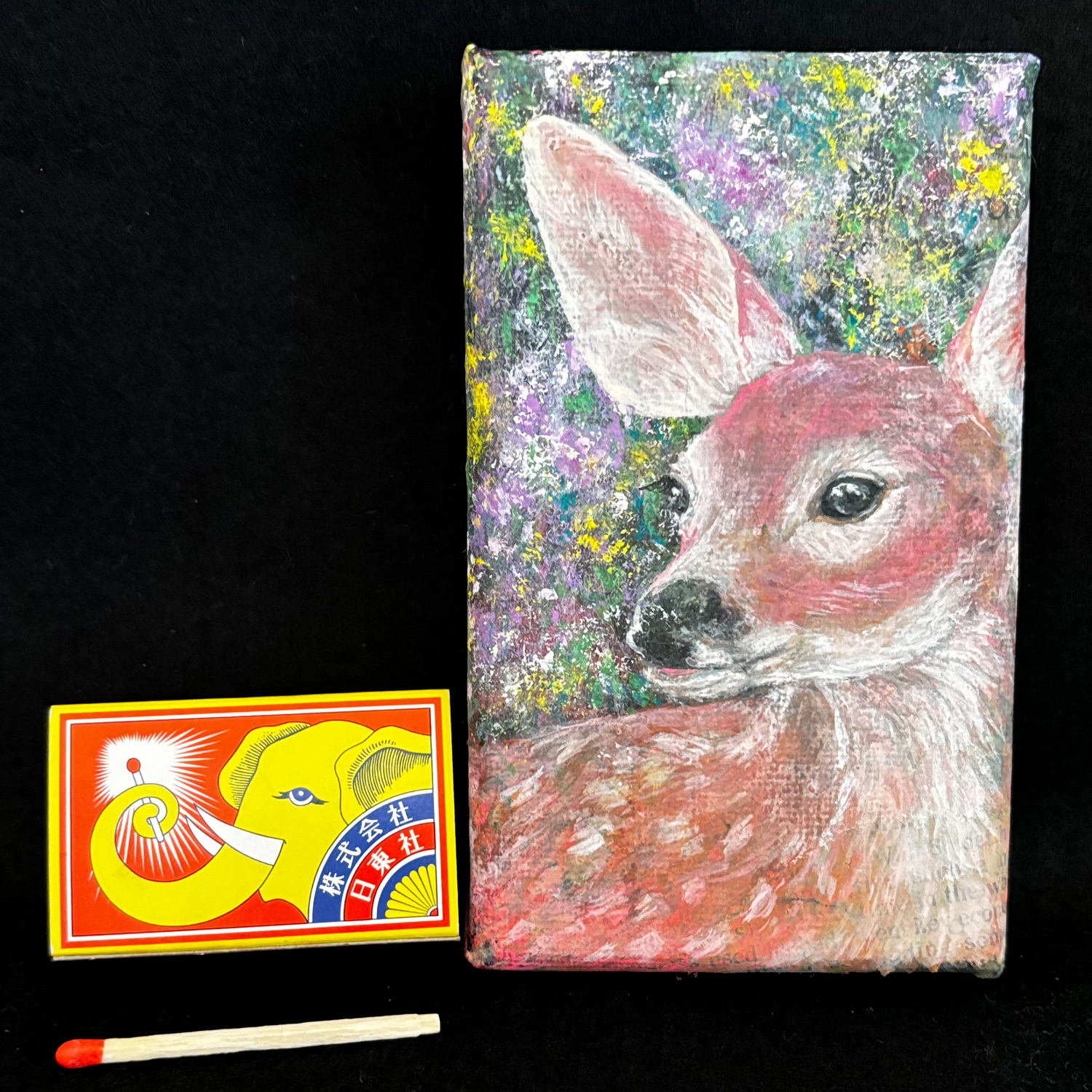 小さなキャンバス(7.5cm × 12.5cm)に子鹿を描きました。