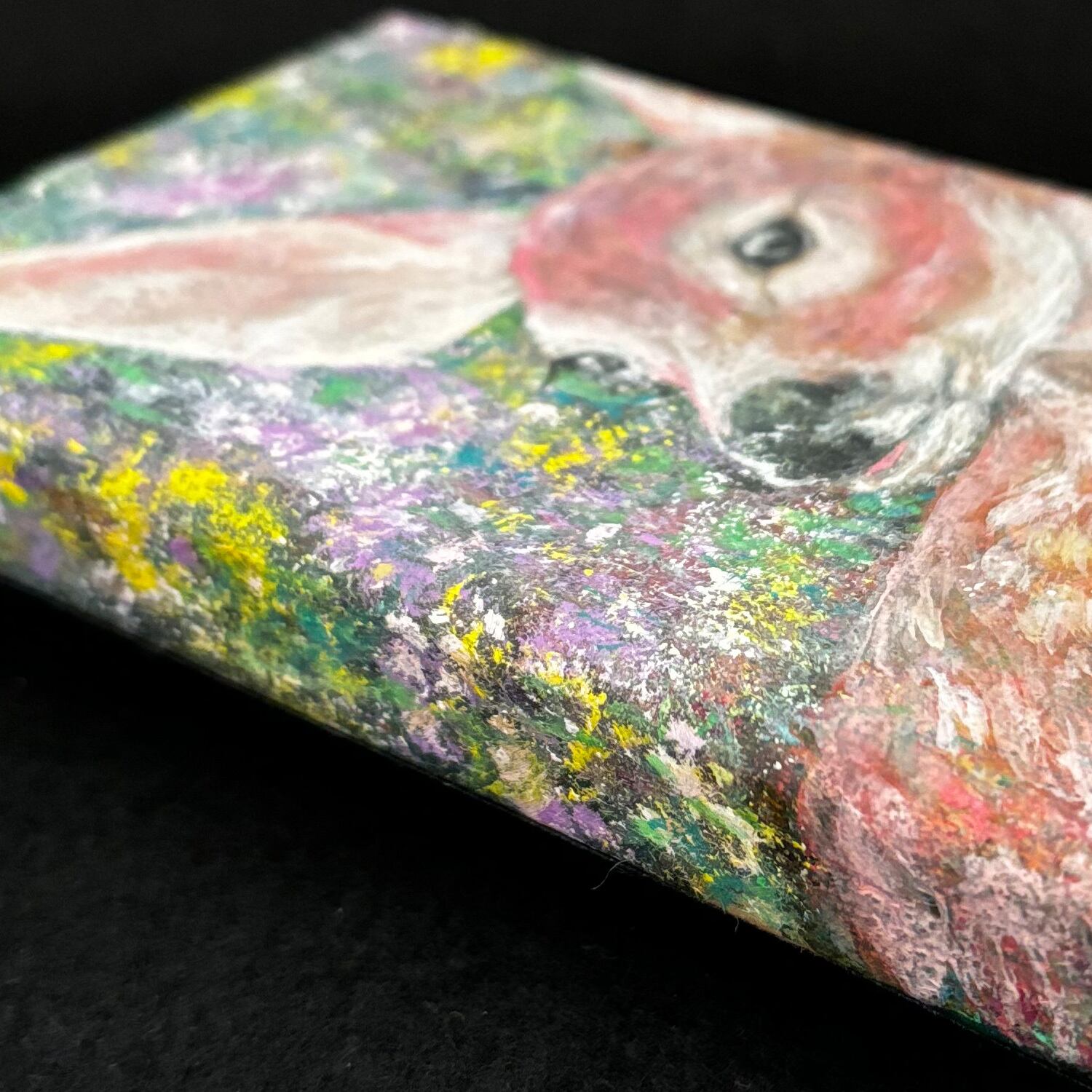 この絵が、飾る場の雰囲気を柔らかく癒してくれるよう、心温まる空間を演出してくれるように願いながら制作しました。