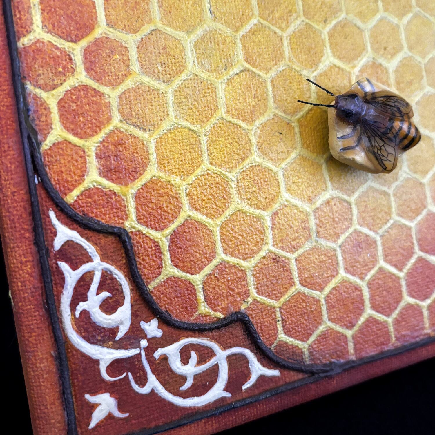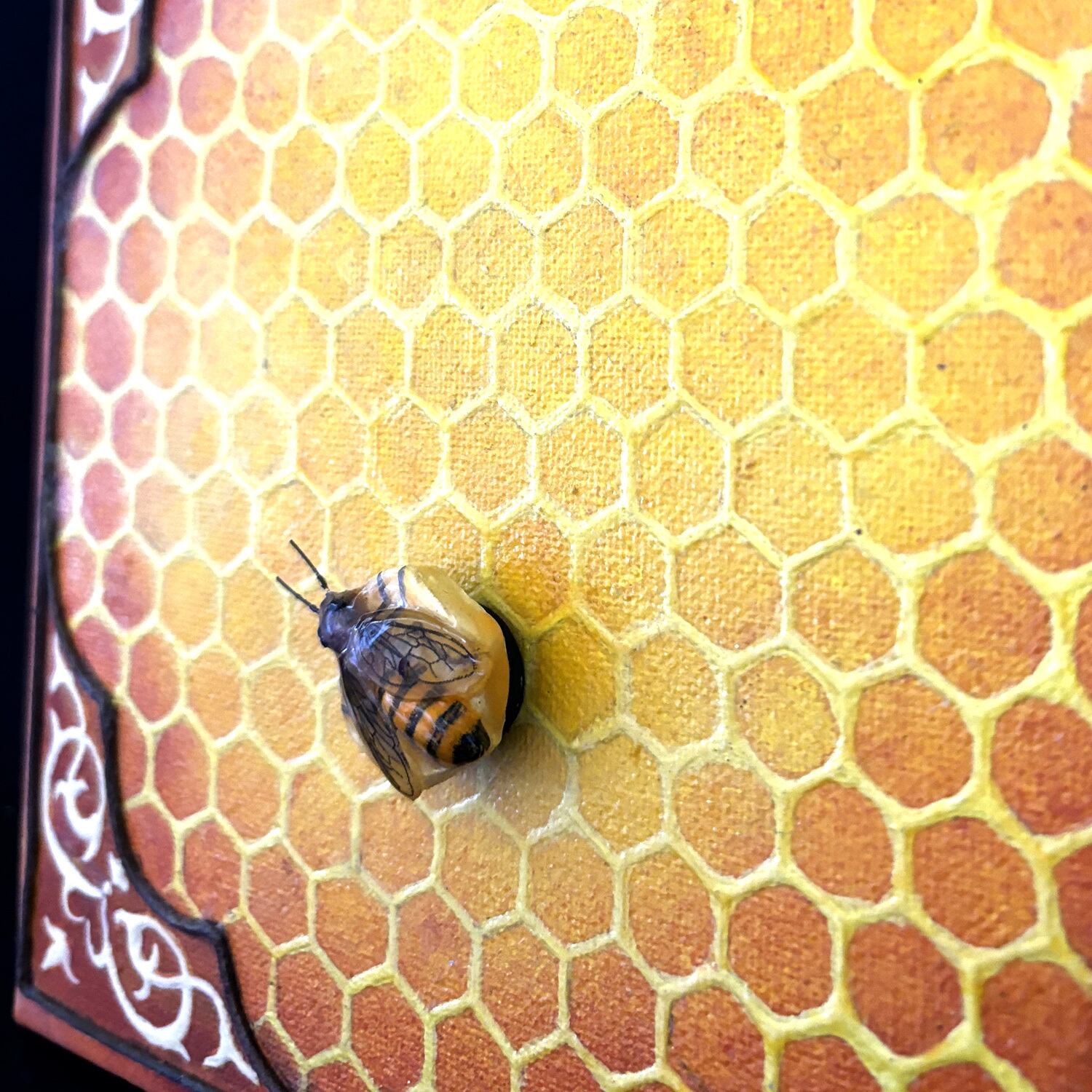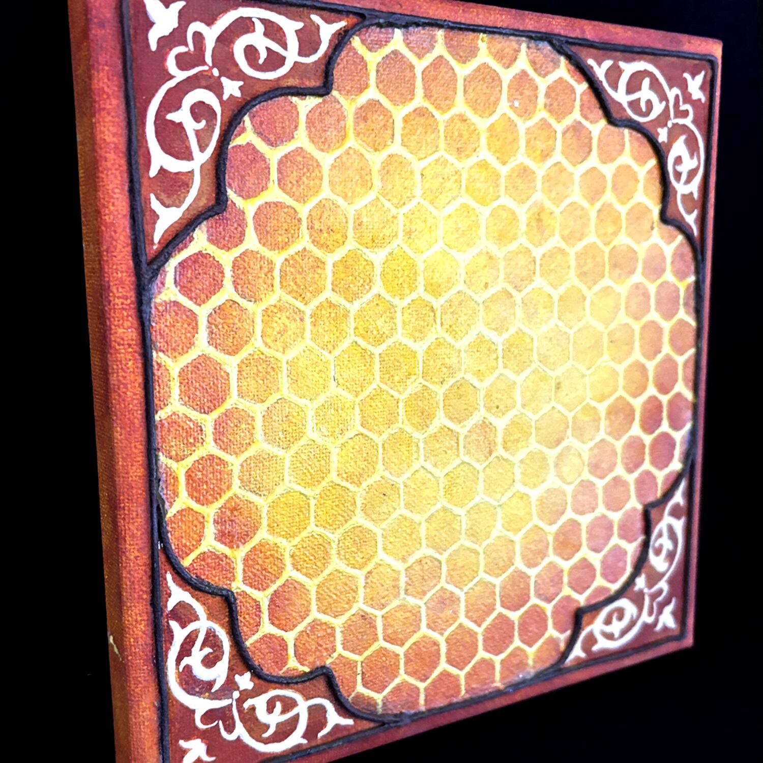 その蜂の巣をキャンバスに敷き詰め、四隅にアラベスクを配置しました。