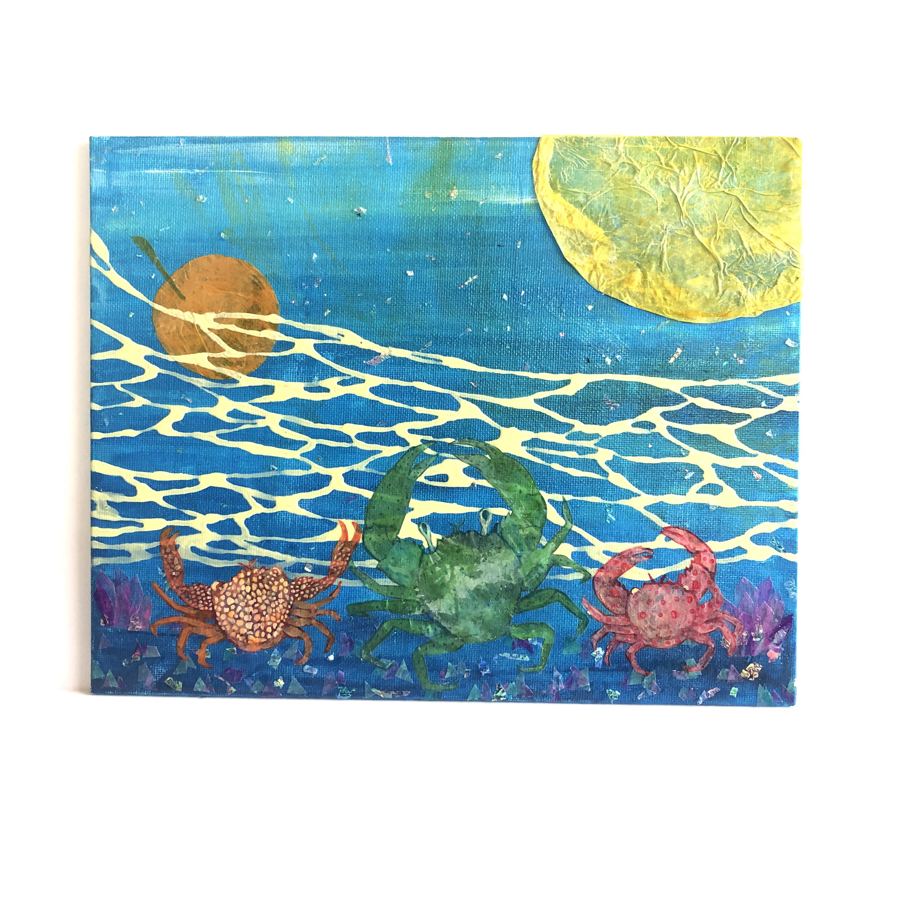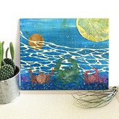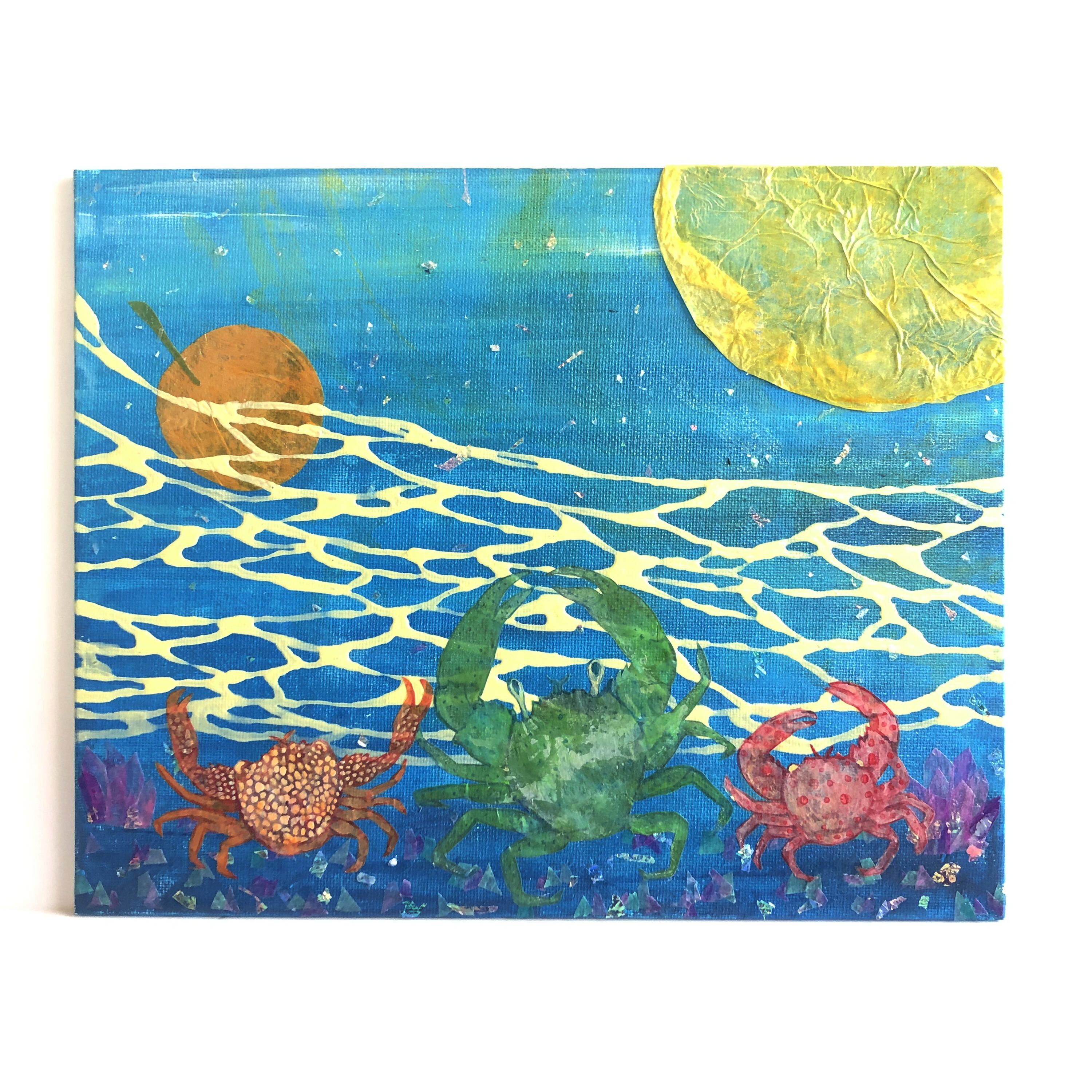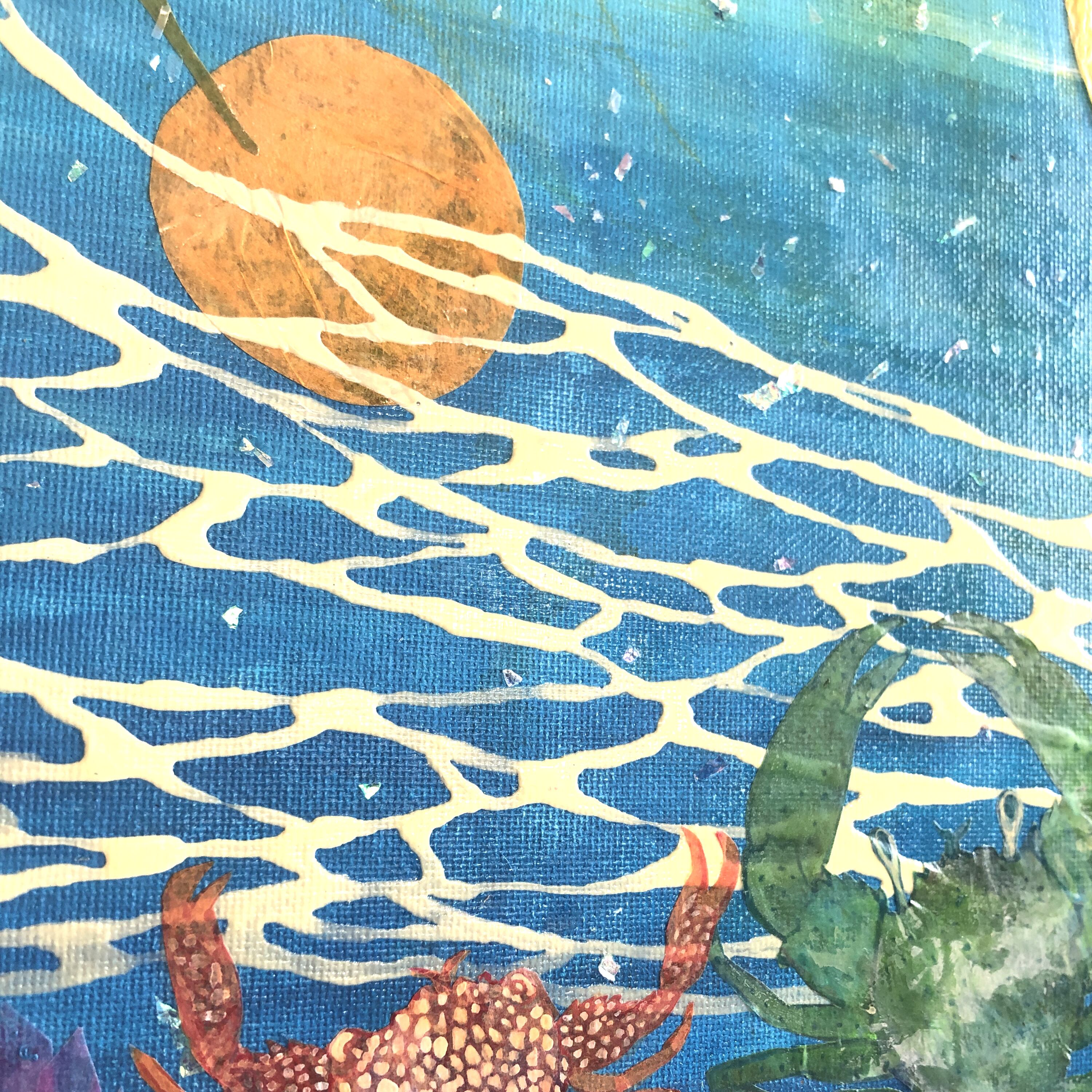 宮沢賢治の小説「やまなし」の世界をアクリル絵の具とトレーシングペーパーで表現しました。