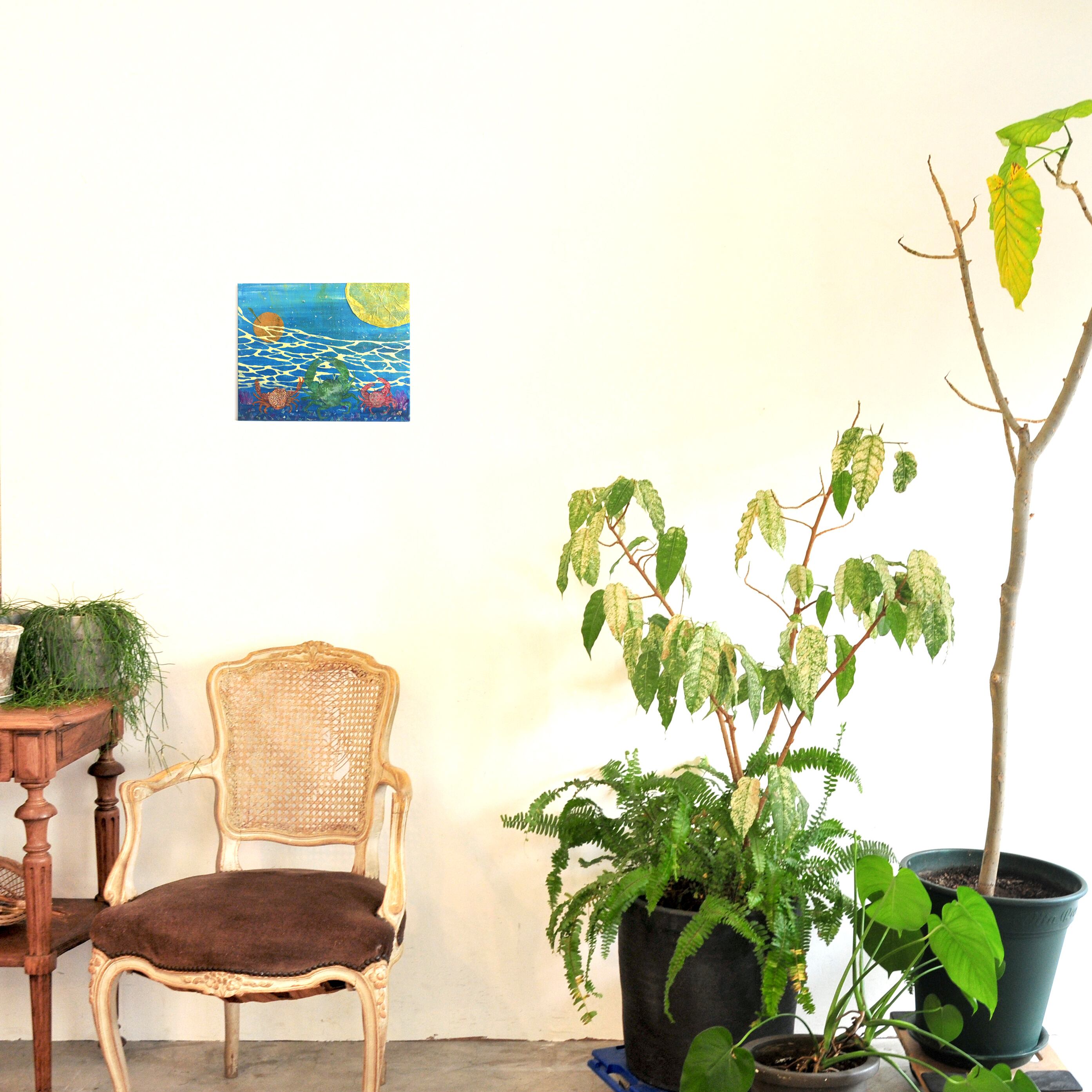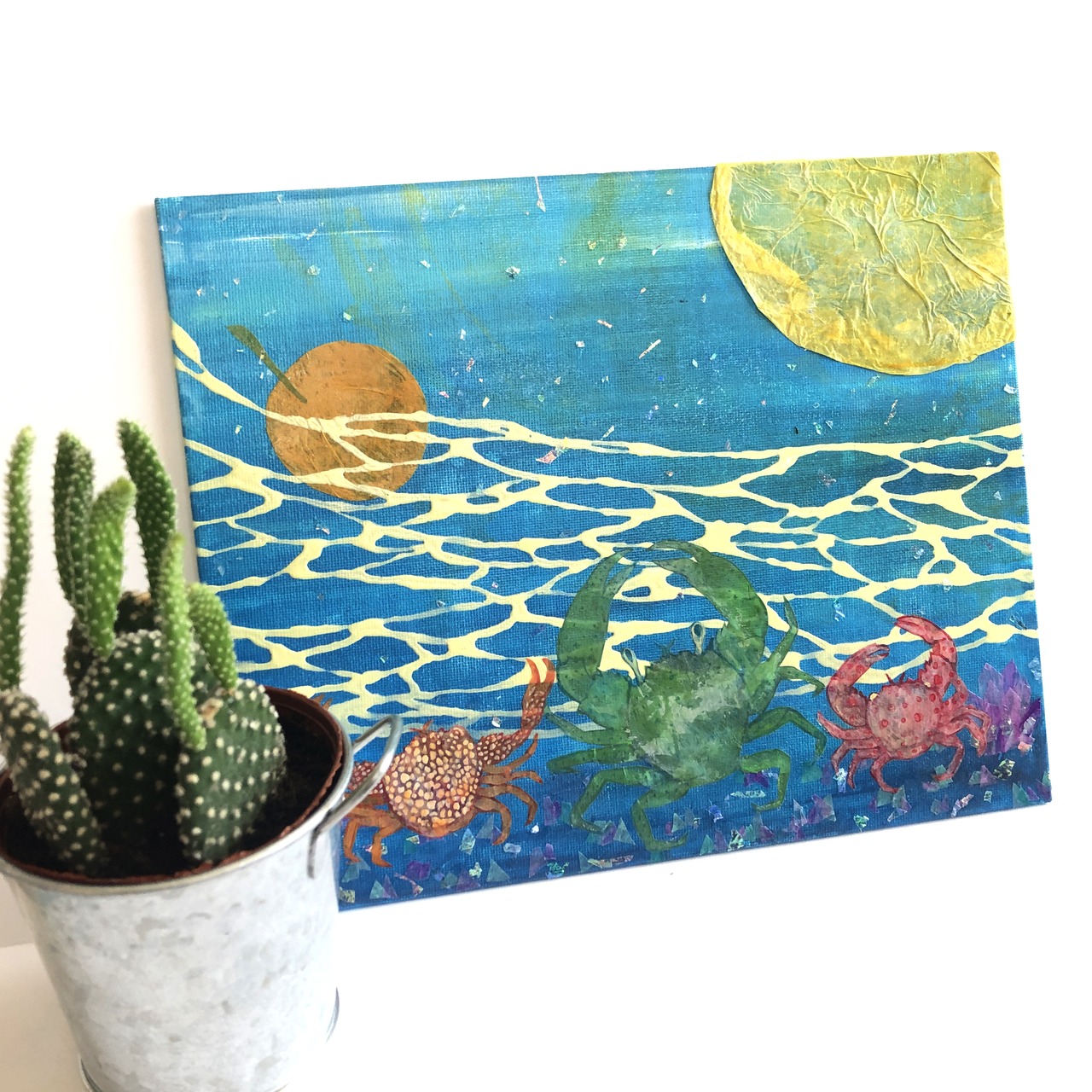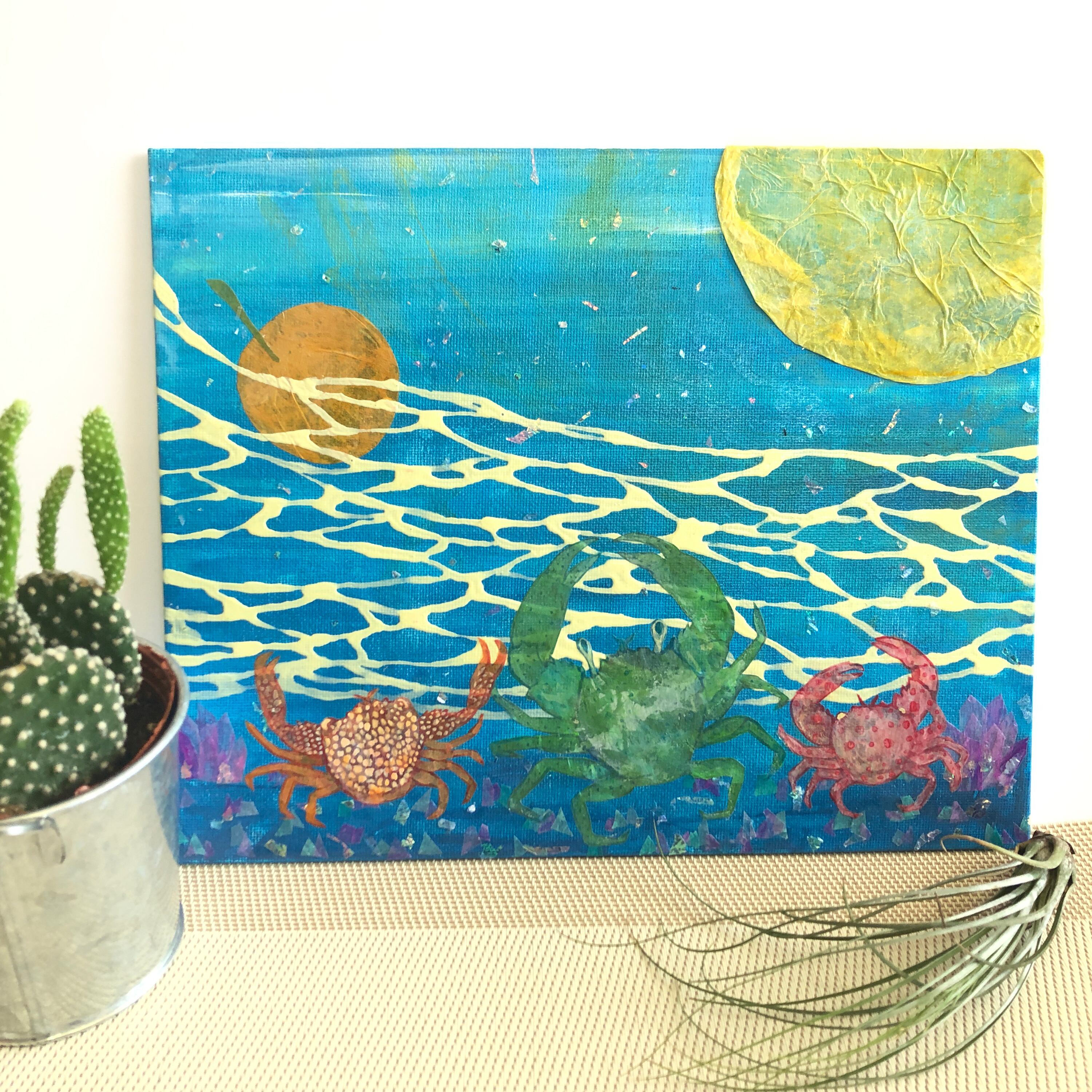 宮沢賢治の小説「やまなし」の世界をアクリル絵の具とトレーシングペーパーで表現しました。