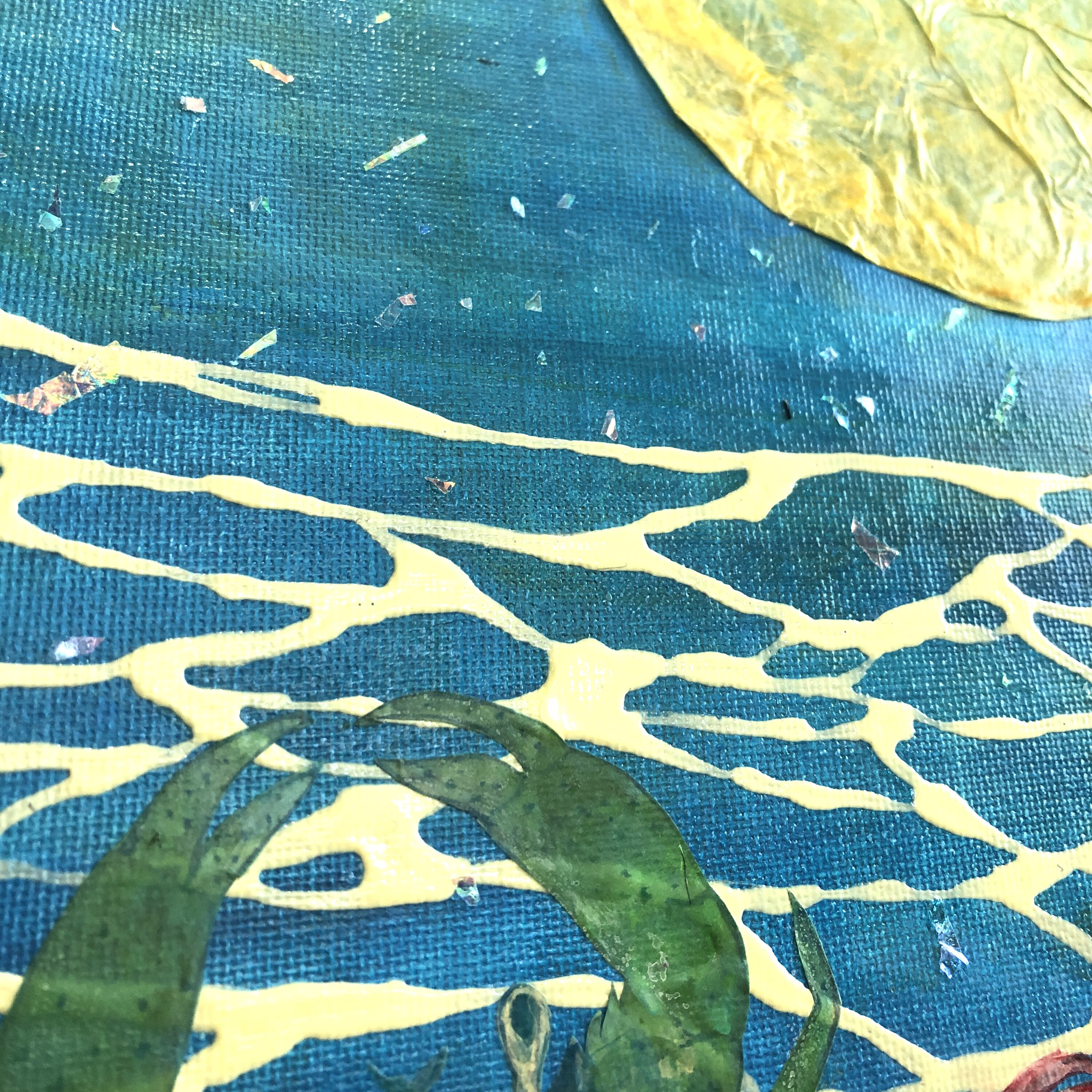 月光に輝く水面は、ストリングジェルメディウムという、蜂蜜状のドロっとした質感で仕上げました。