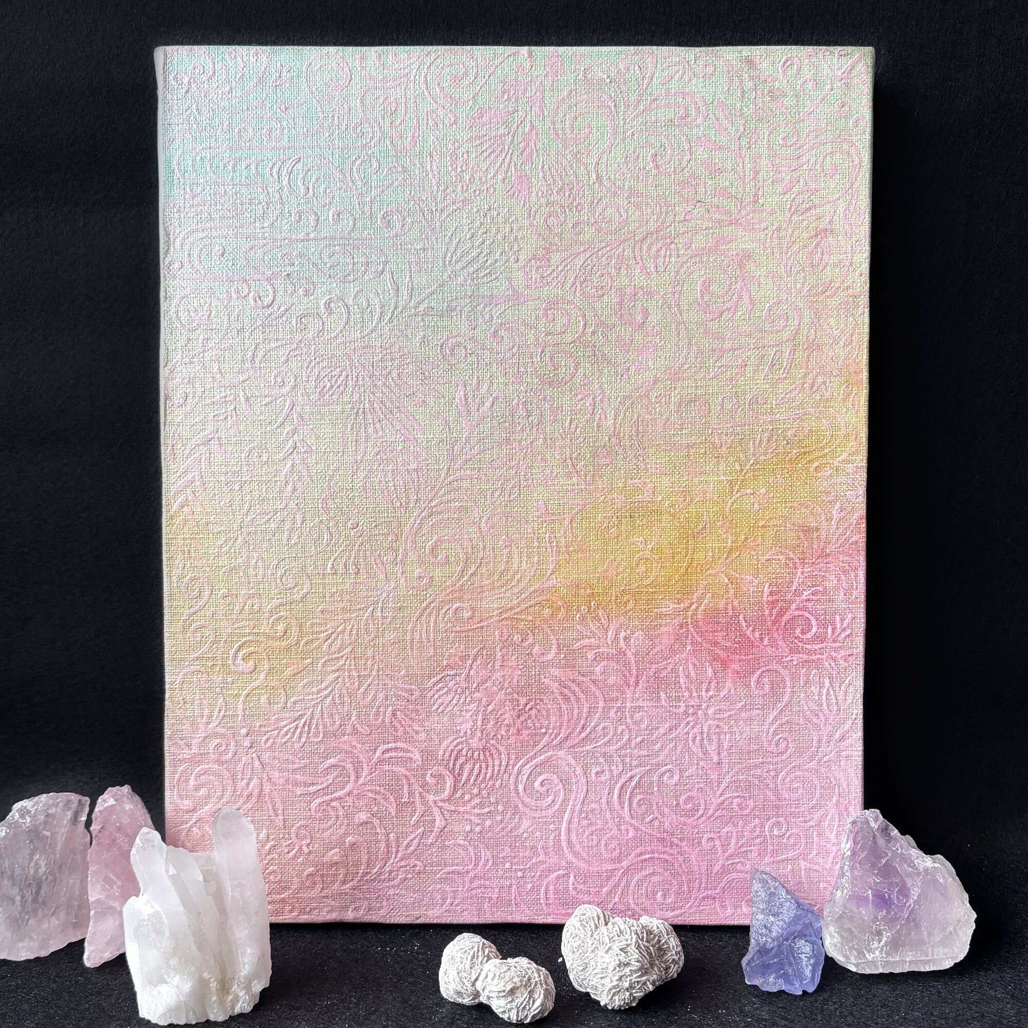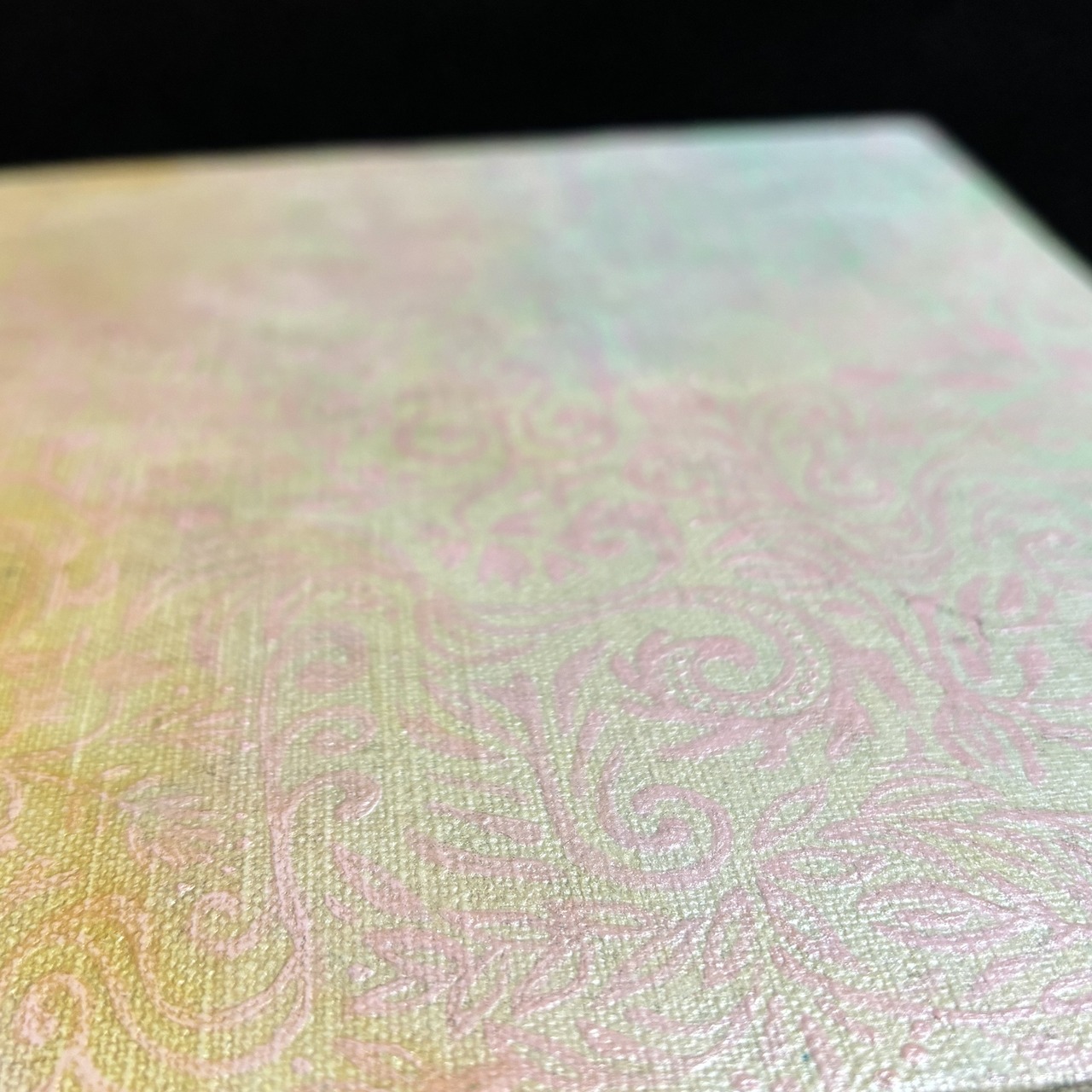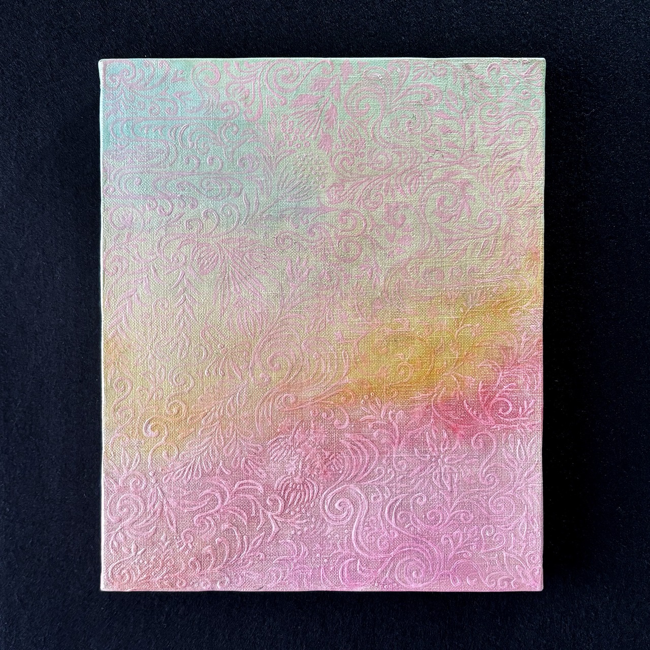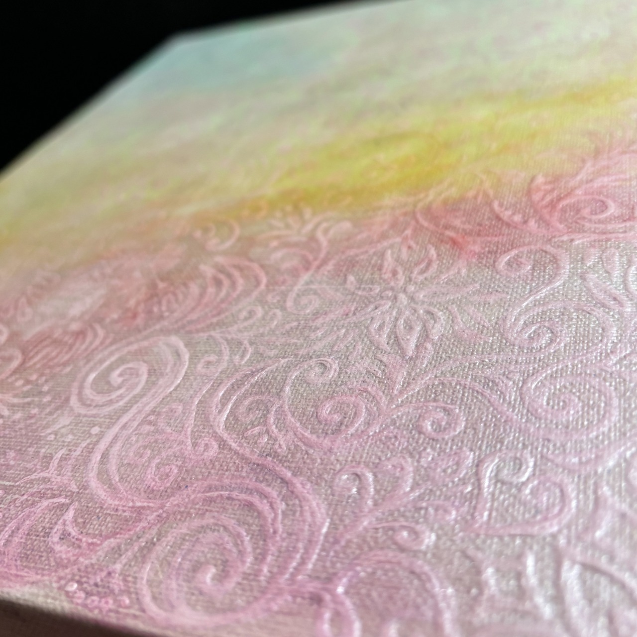 ぱっと見はシンプルなグラデーションの絵ですが、よく見ることにより、いろいろな模様や形状、そしてラメのきらめきやパール顔料ならではの奥行きのある色彩を楽しめることができます。