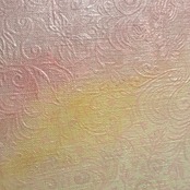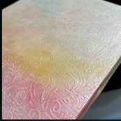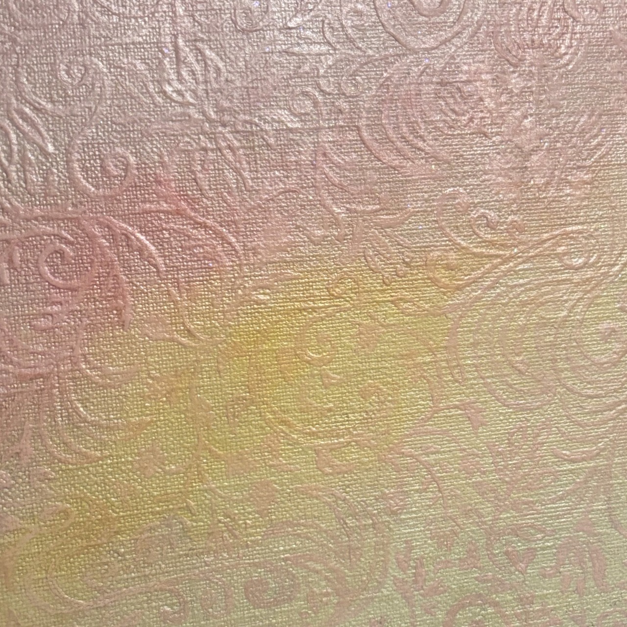 その上にパールピンク色で模様を何度も塗り重ねて描き、盛り上がりのあるエンボス風に仕上げています。