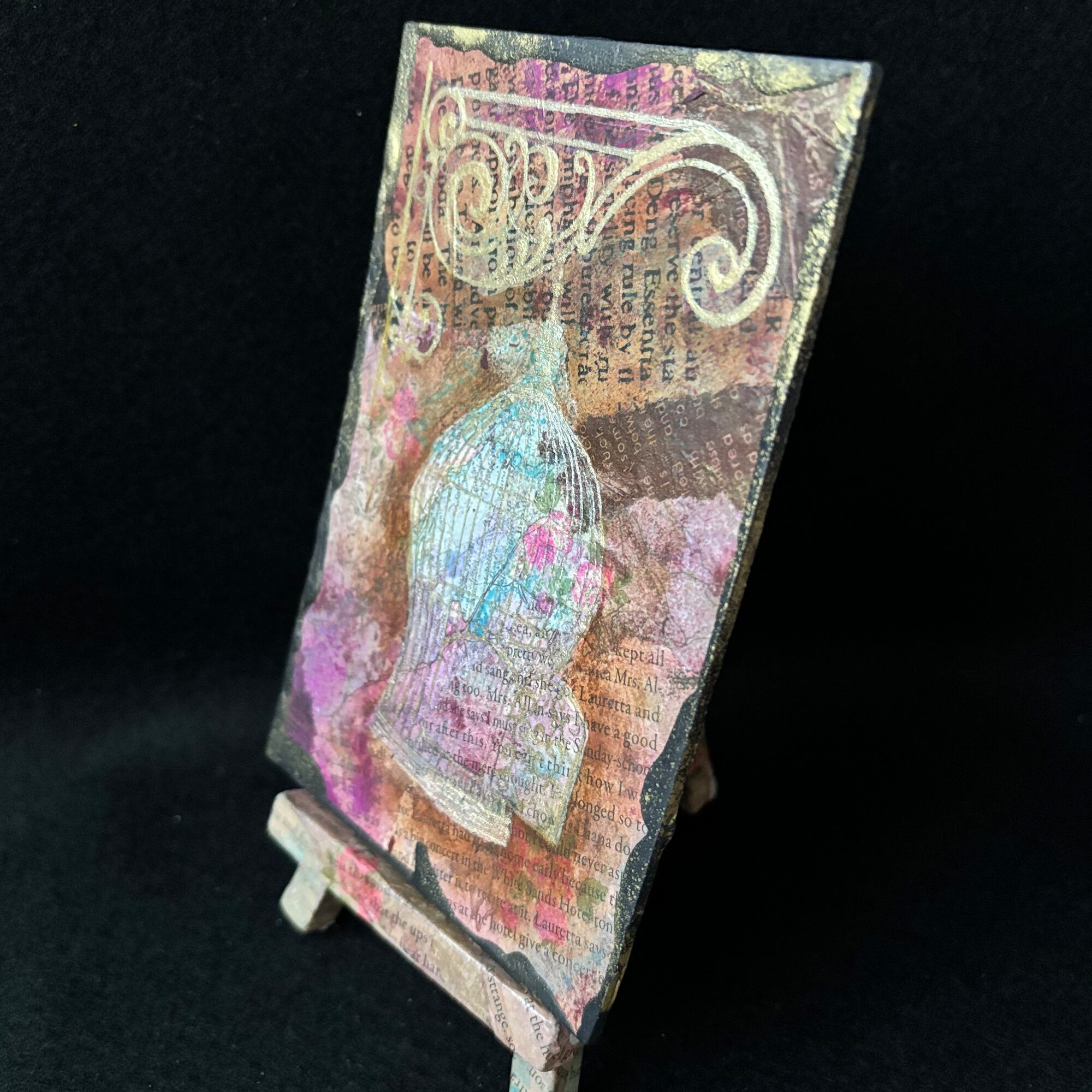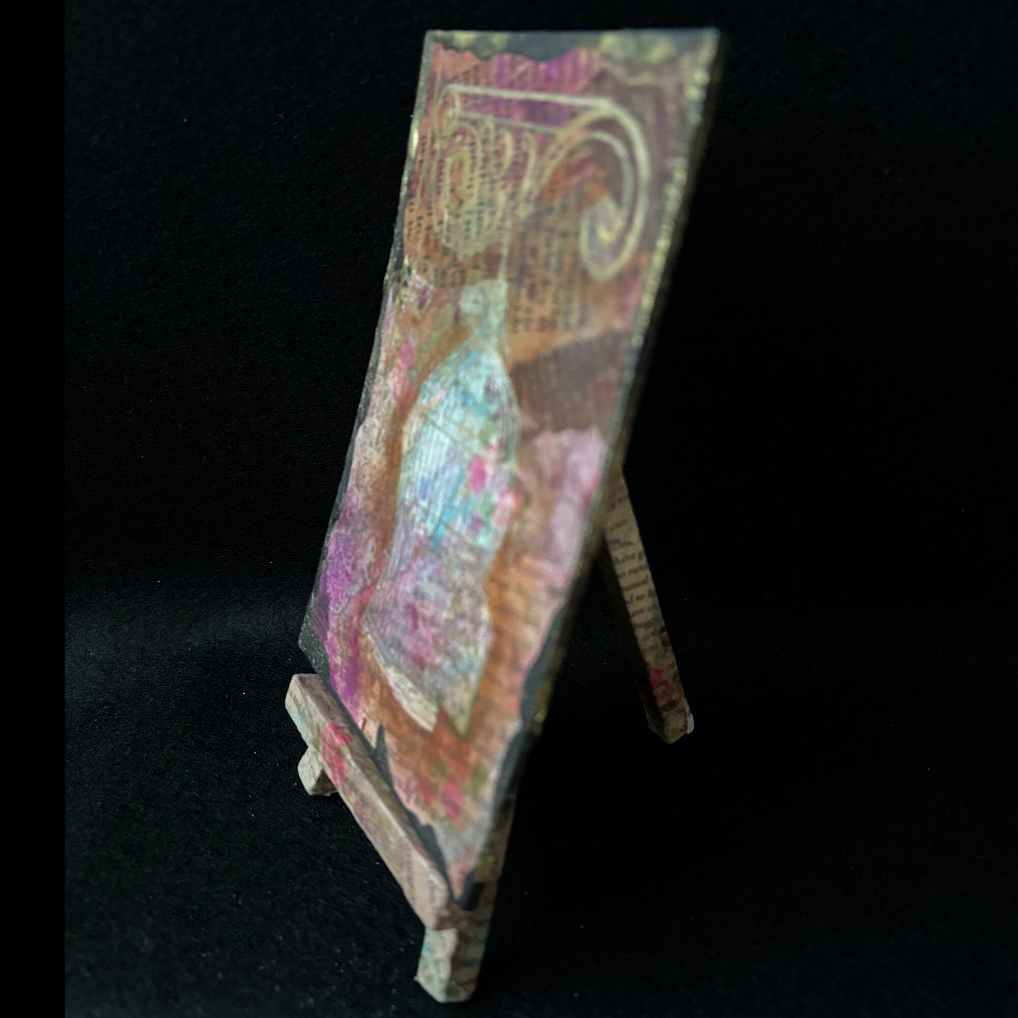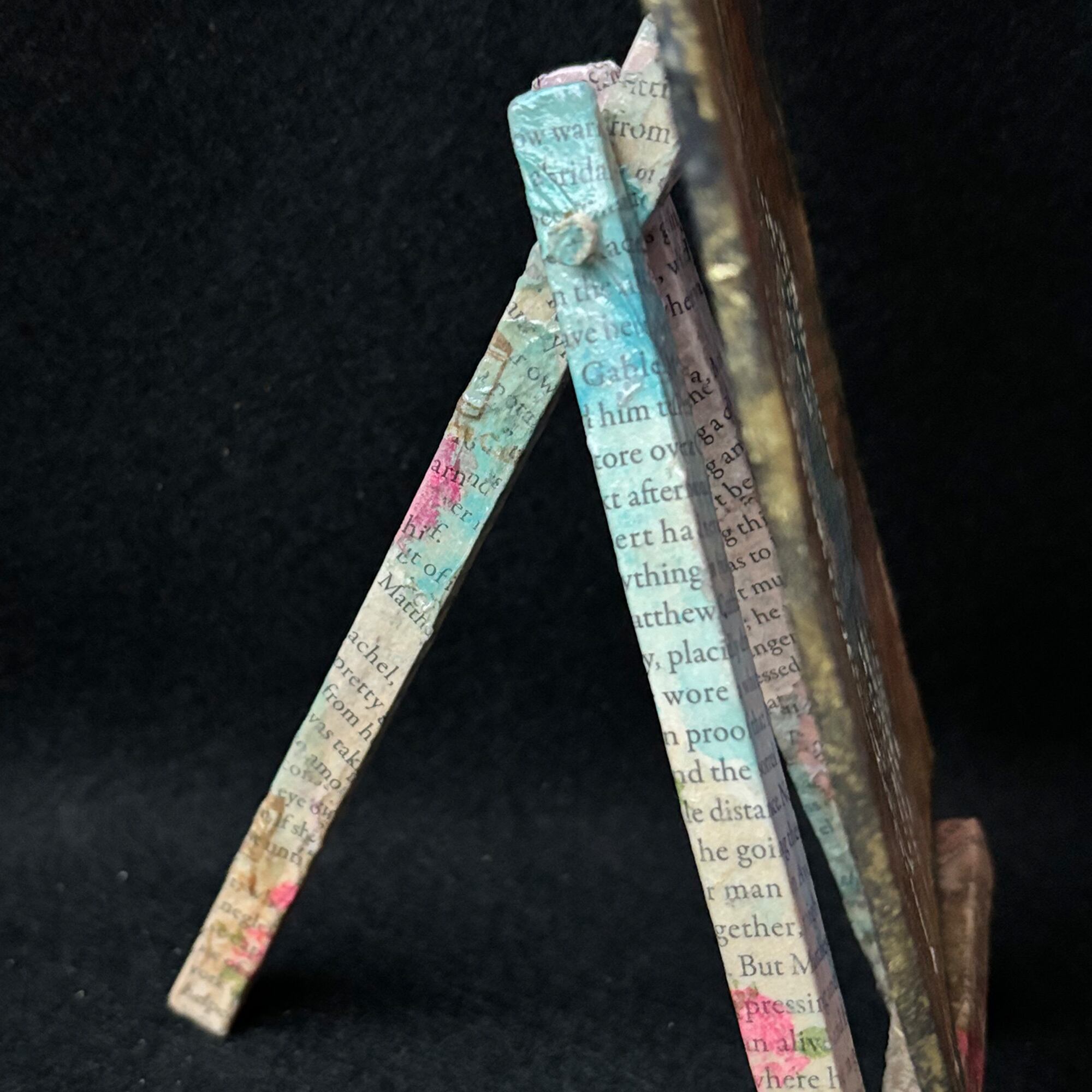 オプションで、英字ペーパーをコラージュしたミニイーゼル(300円)と合わせることもできます。