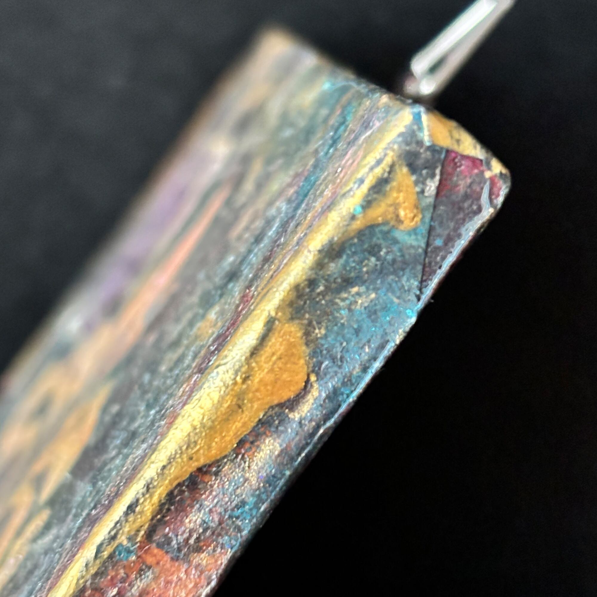 キャンバスの周囲を金色で汚して、独特の風合いを創りました。
