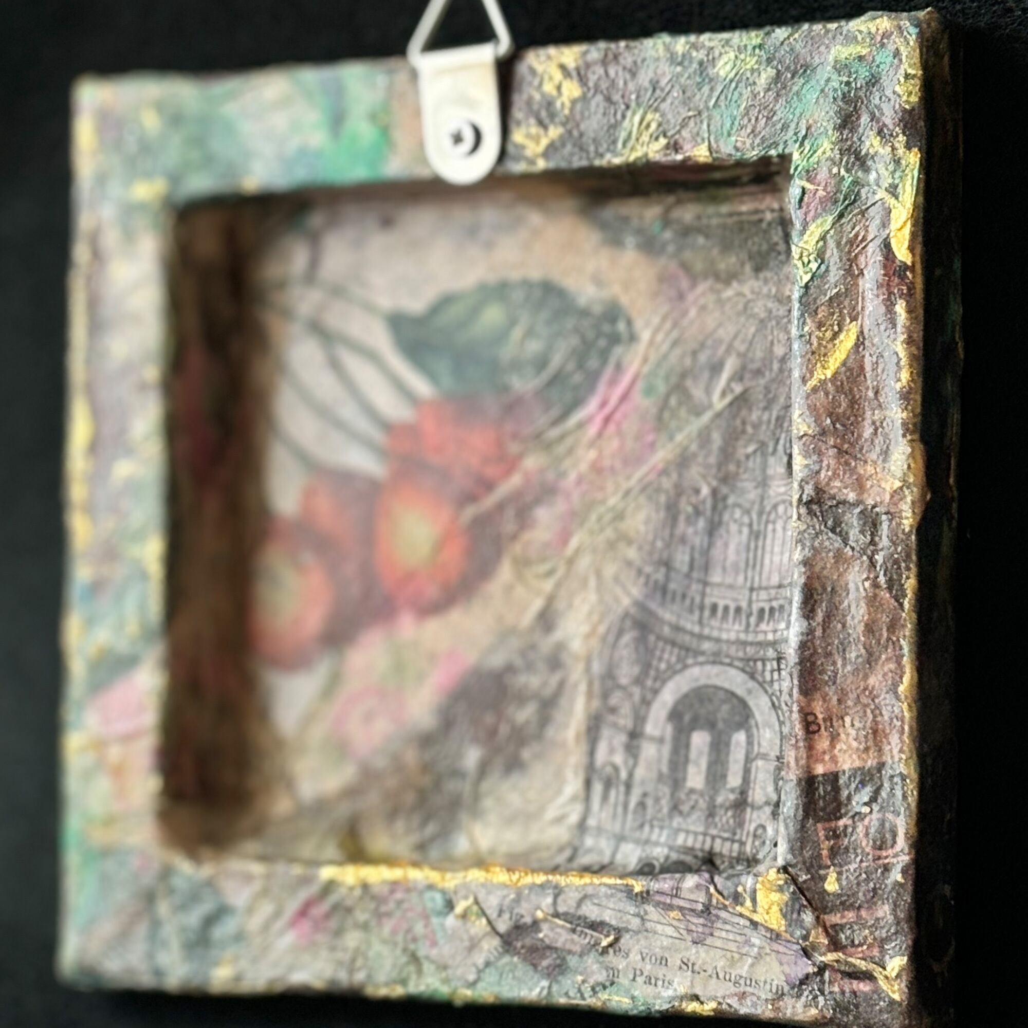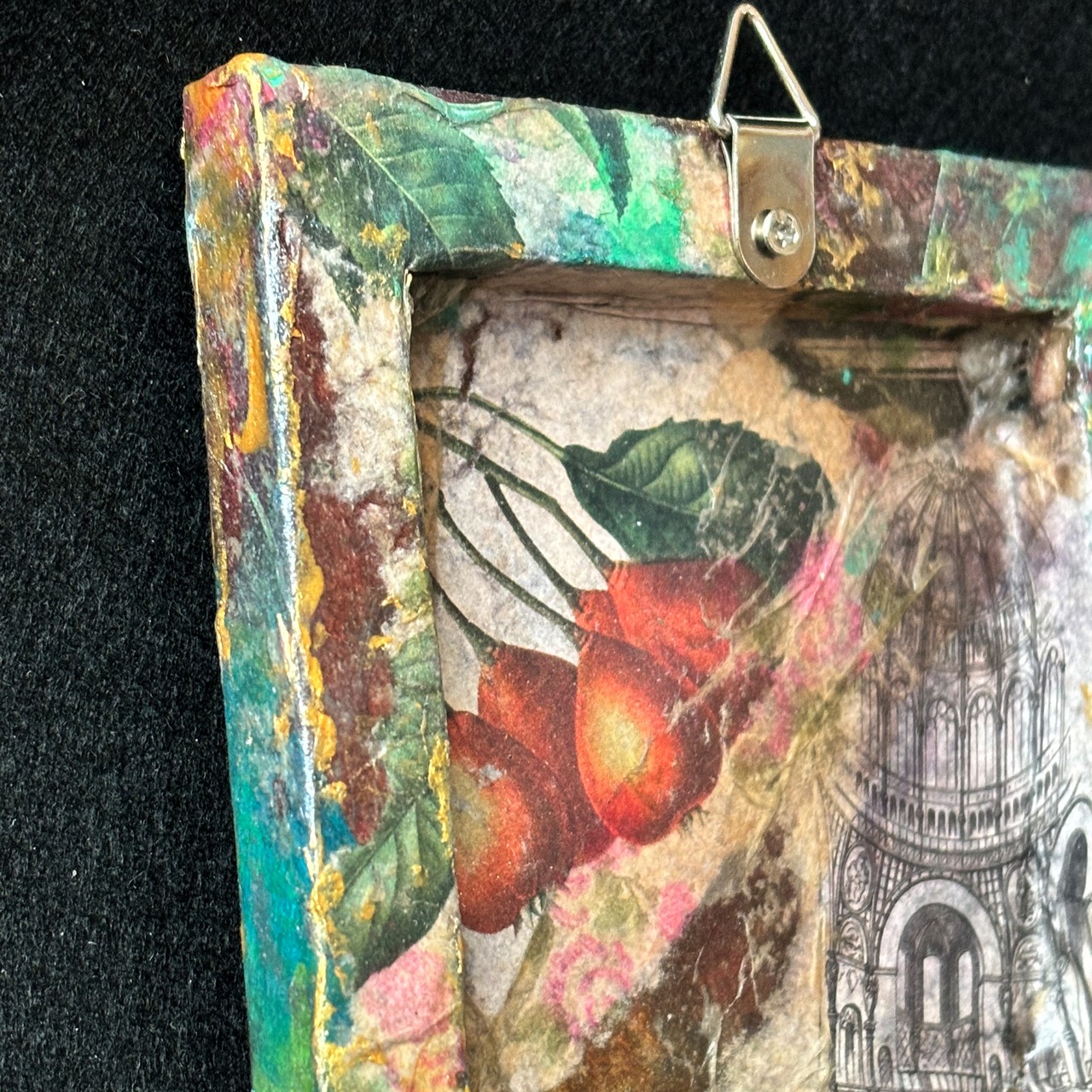 裏面は、木のみと建築物などのアンティーク調デザインペーパーをコラージュしました。